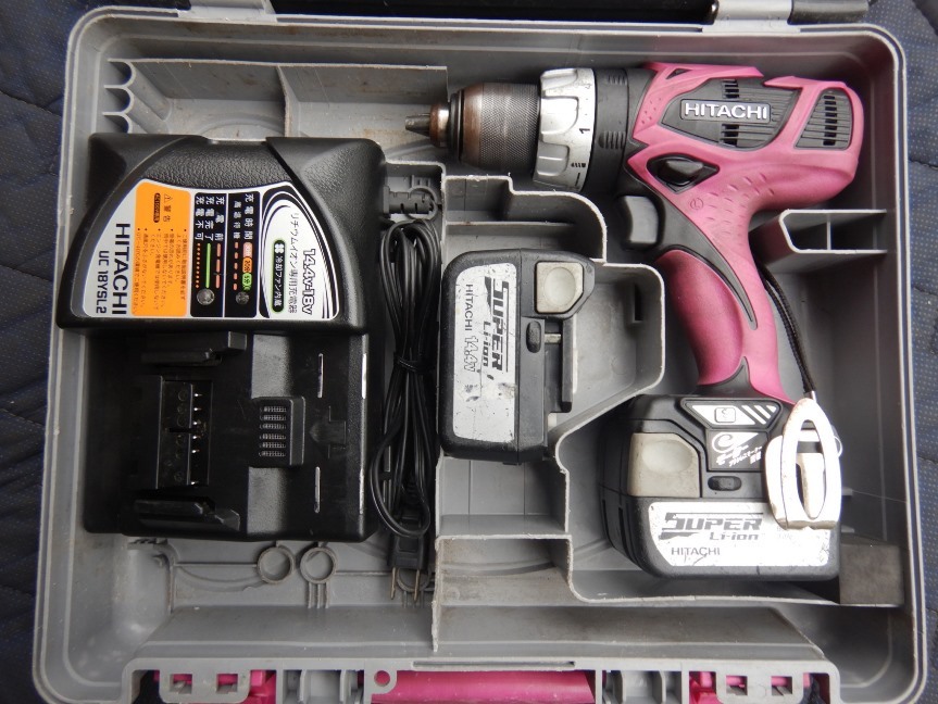 | 即決税込 中古保証付 日立14,4V 充電ドライバードリル DS14DBL 3,0Ah予備電池付セット になります。 トルク54N・m ブラシレスモーター 無段変速・22段クラッチ LEDライト ============== 形名: DS14DBL 能力: ねじ締め 木ねじ:Φ8×75mm 機械ねじ:M 6 穴あけ 軟鋼板:13mm アルミ:13mm 木材:50mm 最大トルク:54Nm トルクレンジ:【22段】 2,0~8,0N・m(20~82kgf・cm) 無負荷回転数 低速0~400min-1(回/分) 高速0~1700min-1(回/分) 機体寸法(全長×全高): 206×245mm 質量: 1,9kg ドリルを装着しての 動作テストをしております。 異音、芯ブレもありません。 快調に穴あけできました。 無段変速、正逆切り替え、 クラッチ切替、チャック動作 高速、低速切替 確認済みで問題はありません。 電池充電動作も確認済みです。 電池寿命が正確に把握できませんが、 満充電で本体の残量目盛が 2個中2個とも点灯します。 十分に使用できる電池だと 思います。 ================ 即決ですので入札=落札です。 落札価格は消費税込みの金額です。 早いもの勝ち!! ================ |