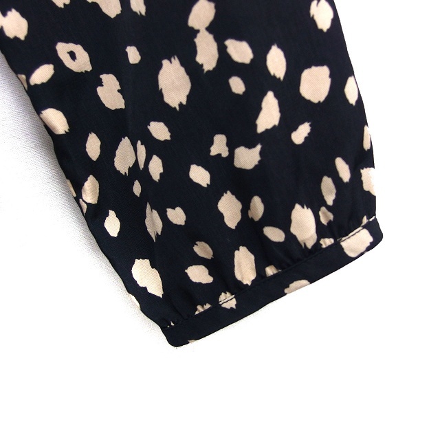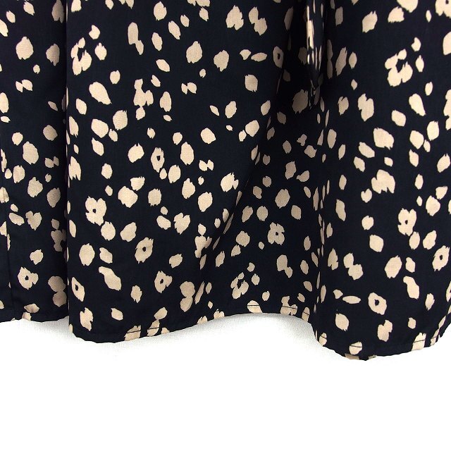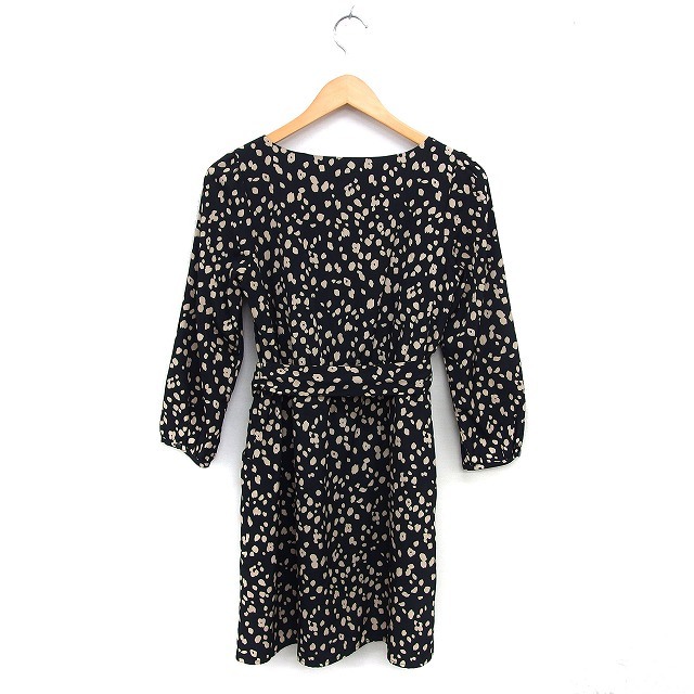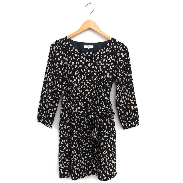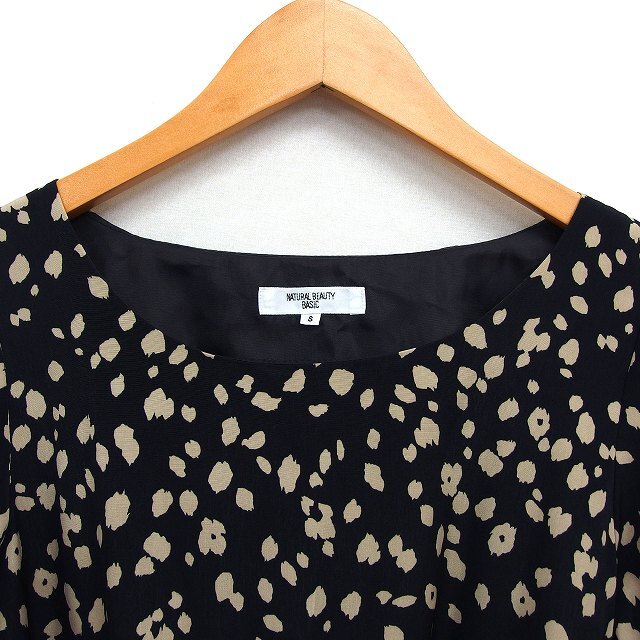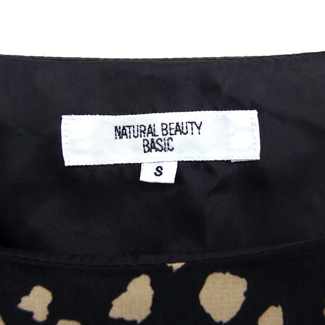 ナチュラルビューティーベーシック NATURAL BEAUTY BASIC ワンピース フレア ひざ丈 リボン ギャザー ボートネック 長袖 S 黒 ブラック