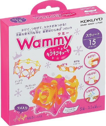 ●セット内容/ワミー15ピース(ラメピンク・ラメオレンジ・ラメきいろ×各5)・つくりかた(ブレスレット)