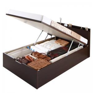 お客様組立 国産跳ね上げ収納ベッド ダークブラウン 薄型プレミアムポケットコイルマットレス付き 縦開き セミダブル 深さグランド