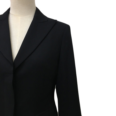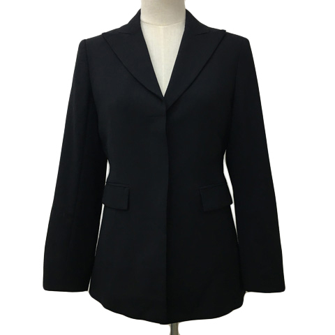 インディヴィ INDIVI ジャケット テーラード シングル 比翼仕立て ウール 長袖 38 黒 ブラック レディース