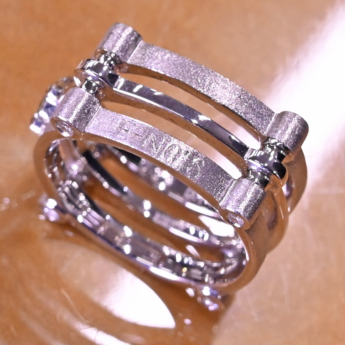 イーノスの純正ダイヤモンド K18ホワイトゴールド メカニカル リングです。 唯一無二のデザイン性を誇る完全会員制ジュエラー。 メカニカルな造形のボディに純正ダイヤモンドをセッティング。 市場流通量の圧倒的に少ないメゾンのお品なのでお探しの方も非常に多いかと思います。 |