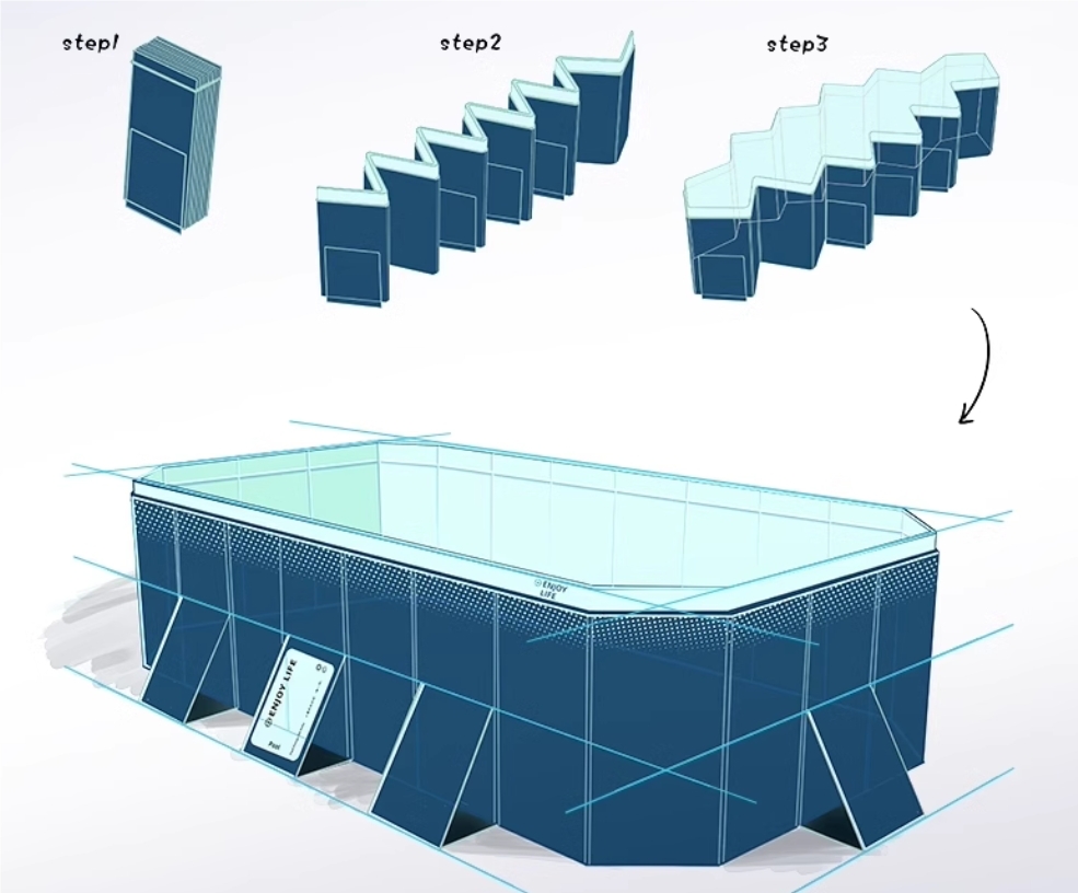 折りたたみプール、組み立て不要、面倒なポンピング不要、穴や縮みの心配なし!