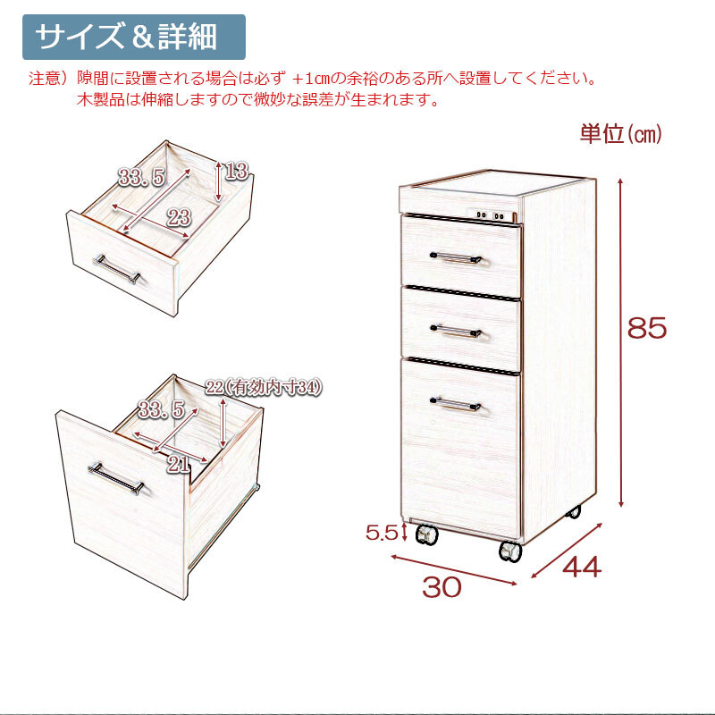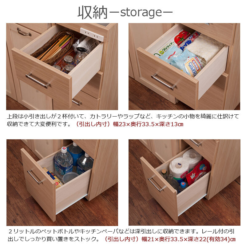 ■引出し内寸(共通)/(約)幅(浅)23(深)21×奥行33.5×深さ(浅)13(深)22(有効34)cm