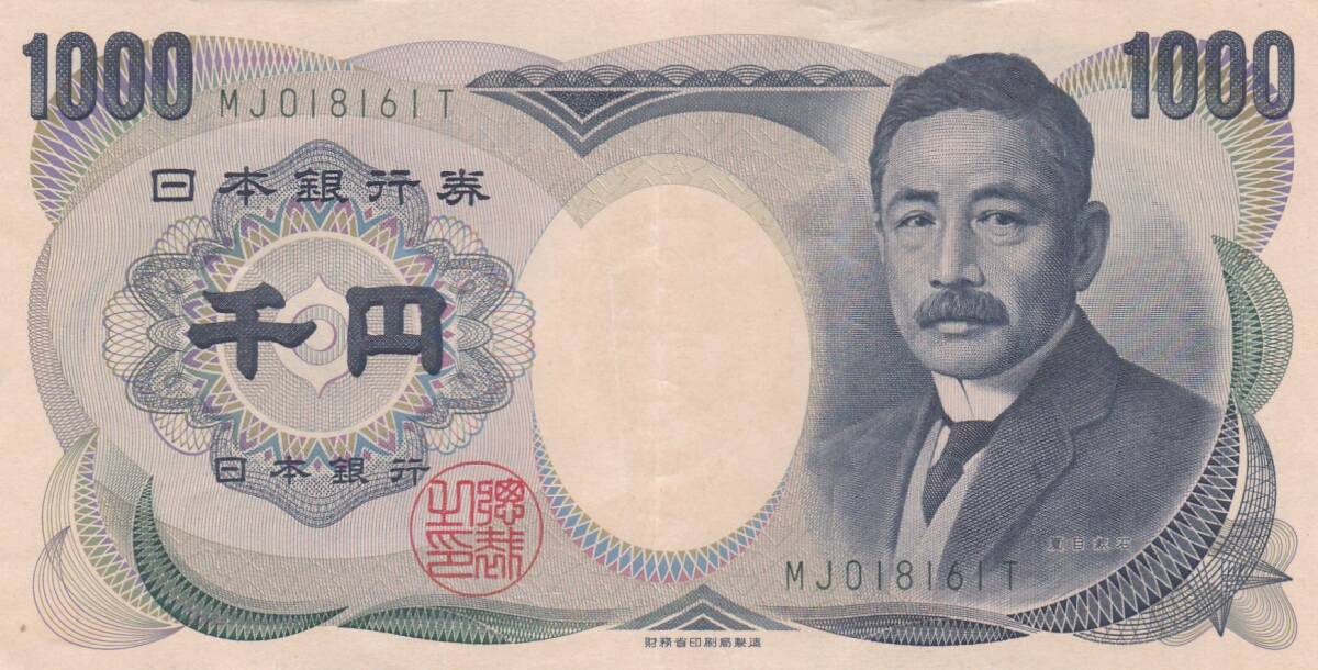 ◇夏目漱石1000円 財務省印刷局 緑色 2桁 並品★