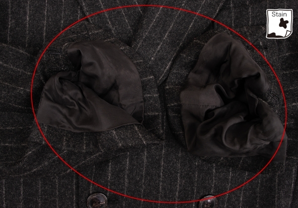 コンディション | 肩パッドあり。襟裏に薄汚れ、袖裏・裏地に汚れ、首元裏地に小穴があります(写真参照)。その他目立ったシミ、汚れ、ほつれ等なくいい状態です。クリーニング済み |