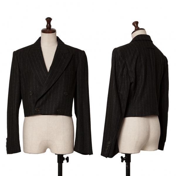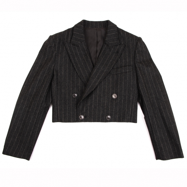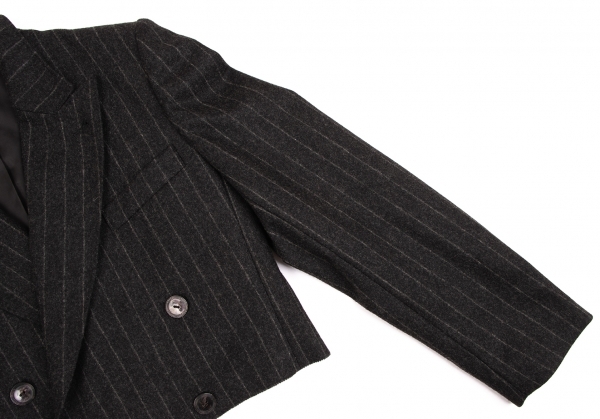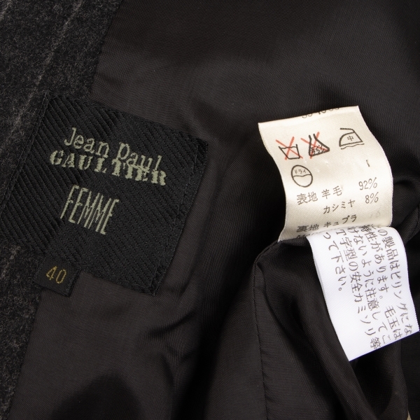 ジャンポールゴルチエファムJean Paul GAULTIER FEMME カシミヤ混ウールストライプショートジャケット チャコールグレー40 |