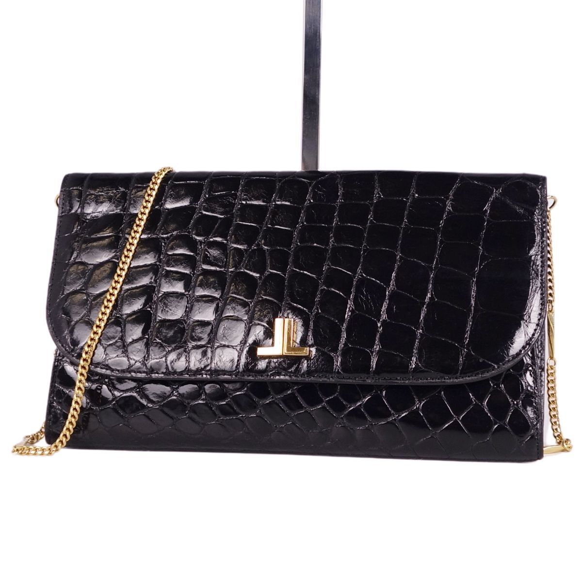 クロコダイル CROCODILE バッグ ショルダーバッグ シャイニークロコ ワニ革 本革 鞄 カバン レディース ブラック |
