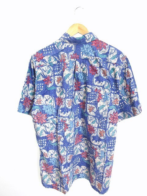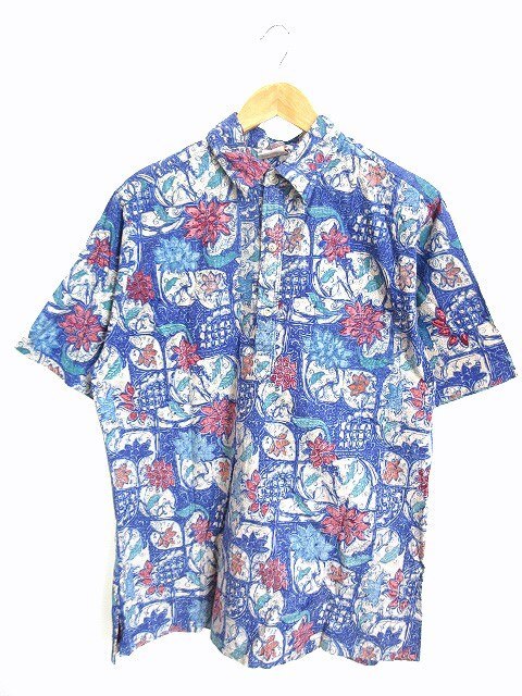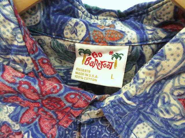 90s GO BAREFOOT アロハシャツ プルオーバー ボタンダウン ハーフボタン 総柄 USA製 L メンズ