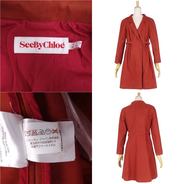 | シーバイクロエ SEE BY CHLOE コート ダブルブレスト 無地 コットン アウター レディース F36(S相当) レッド |