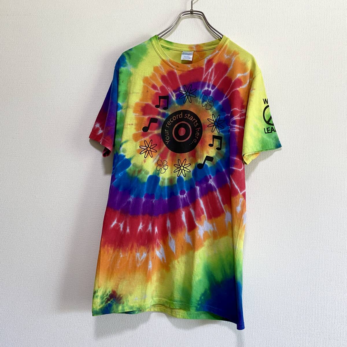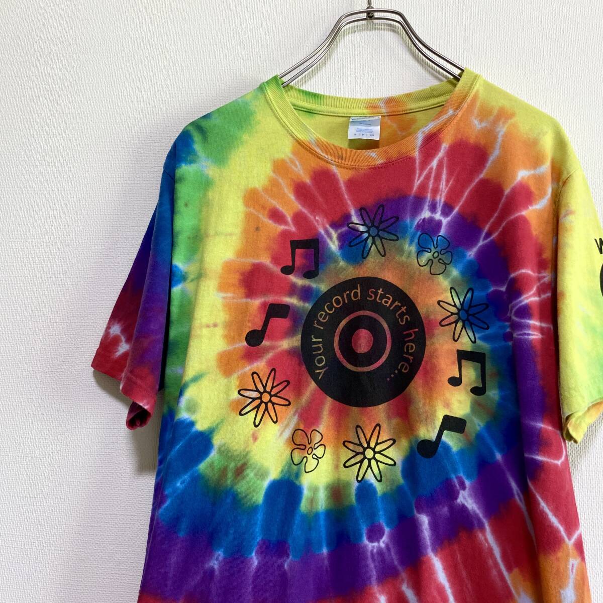 アメリカ古着 レコード プリント 半袖 Tシャツ タイダイ US古着 クルーネック Sサイズ コットン 【I863】