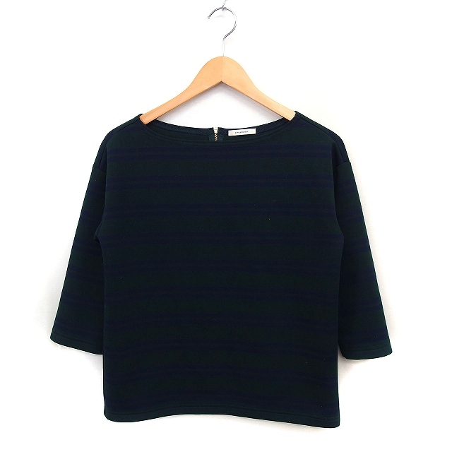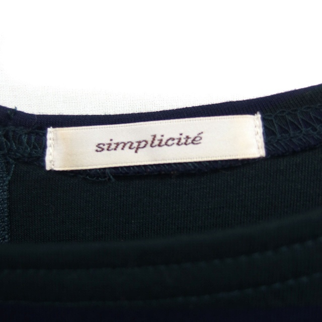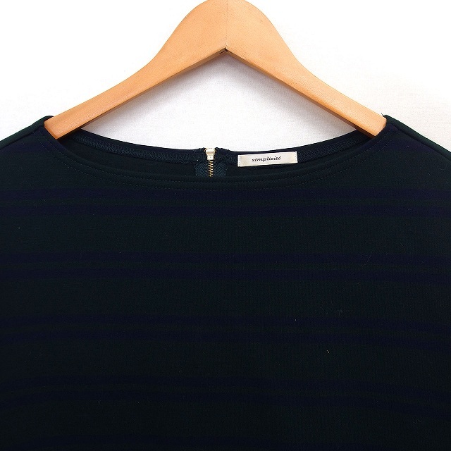 シンプリシテェ Simplicite ボーダー カットソー Tシャツ 七分袖 ボートネック グリーン 緑 ネイビー 紺 /FT43 レディース