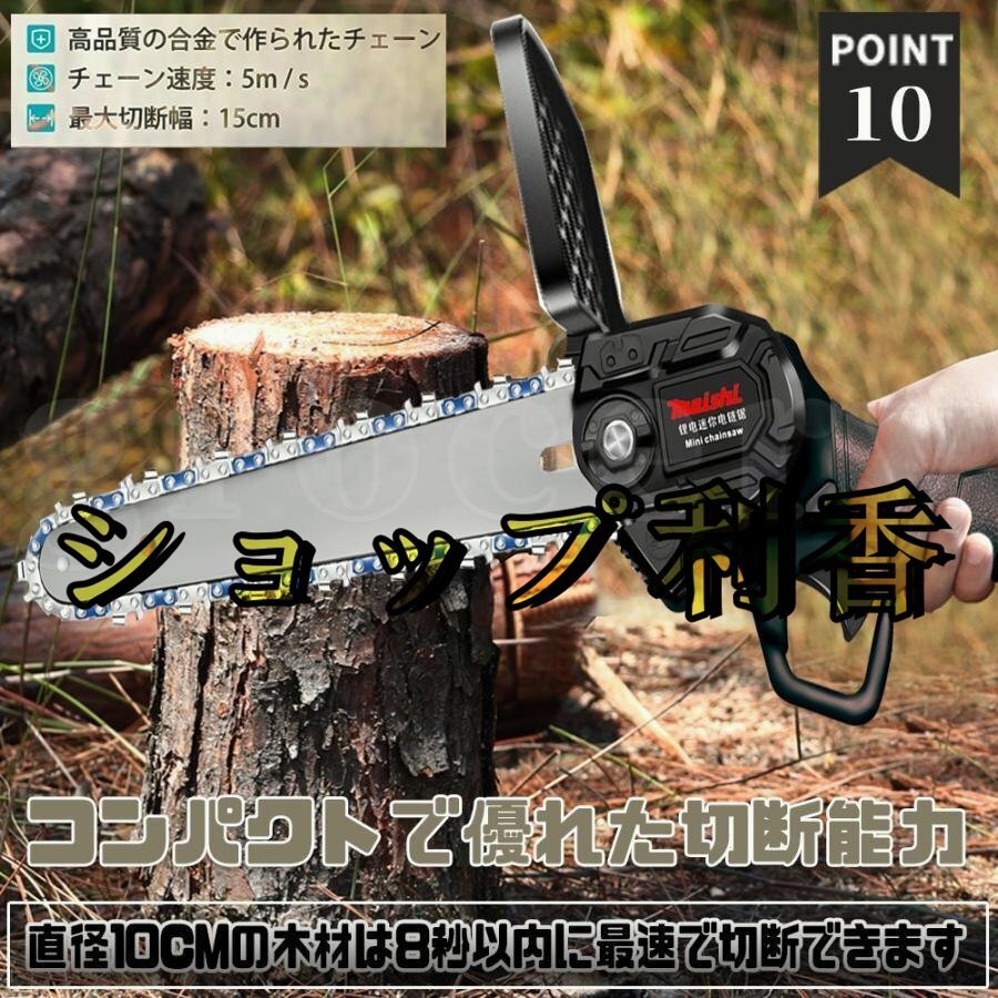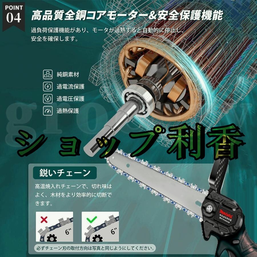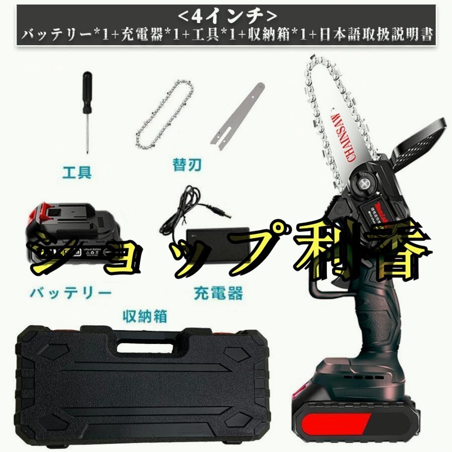 充電式チェーンソー マキタ 18Vバッテリー互換対応 4寸 小型チェンソー バッテリー1個付 収納ケース付き 軽量 木工切断 枝切り