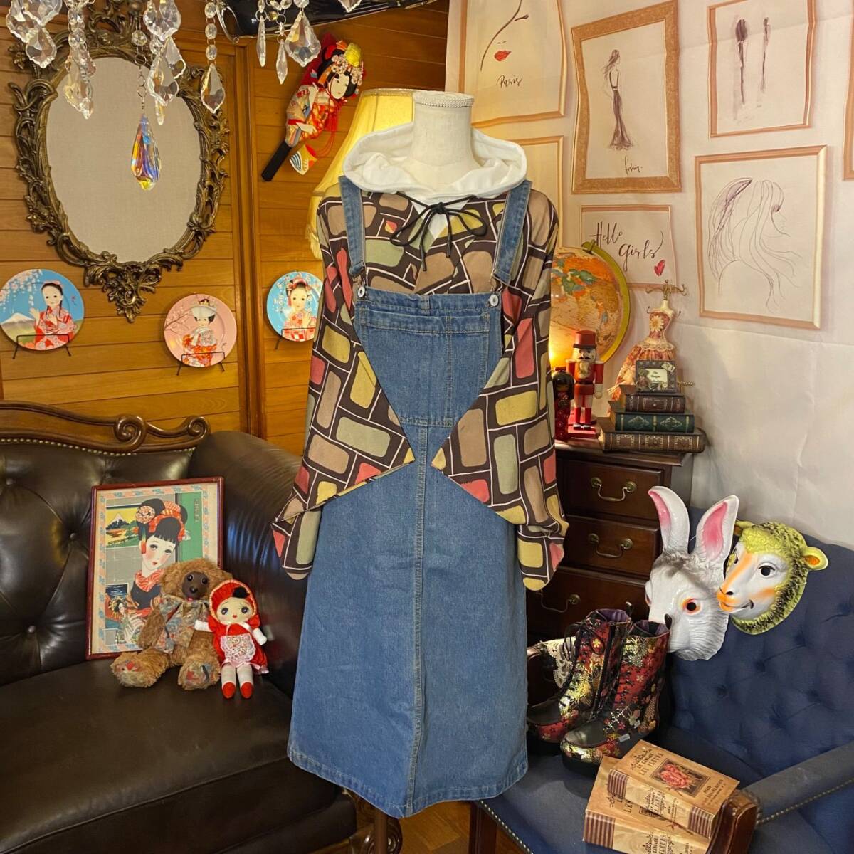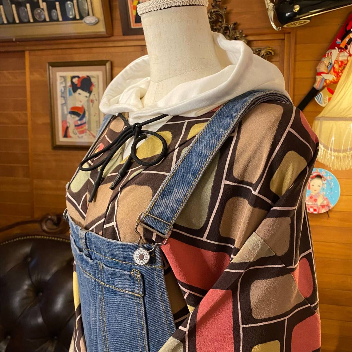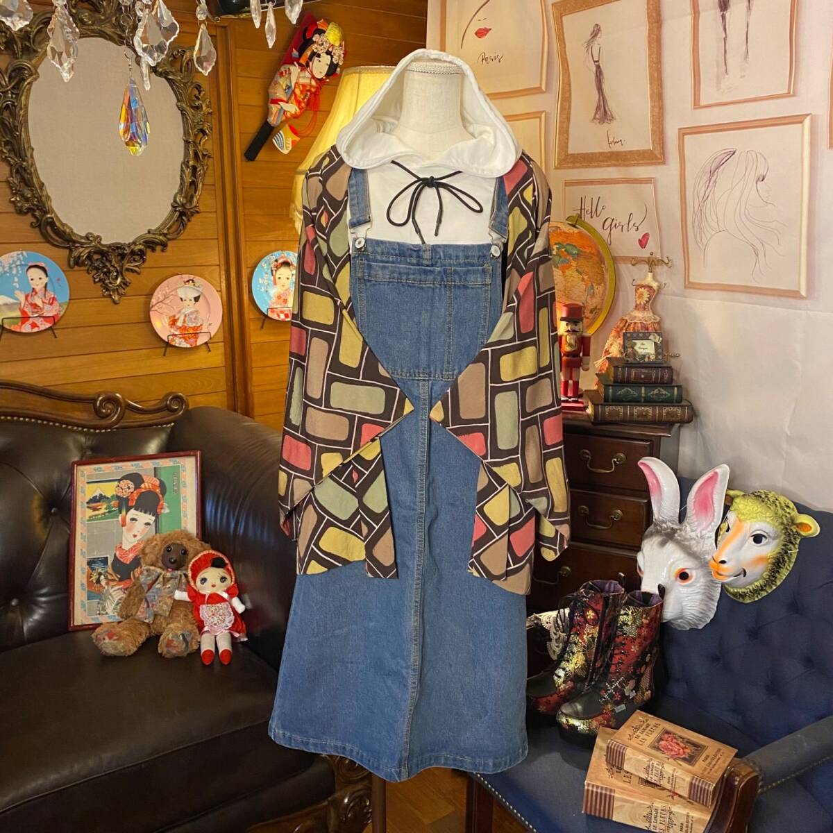 【 和洋折衷 セレクト まとめ売り コーデ レトロ クラシカル 古着 和装 羽織り 多系統 異素材MIX カラフル×デニム系 2点セット C-279】