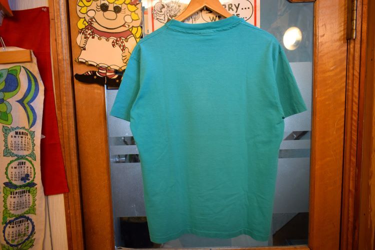 グッドプリントUSA製90sビンテージLevi'sリーバイス半袖クルーネックプリントTシャツMエメラルドグリーン系アメカジストリートワークh24888