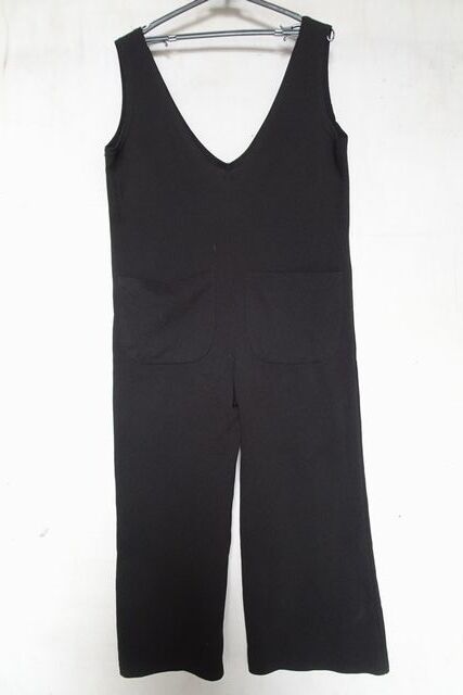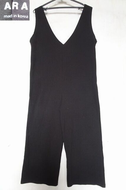ARA/サロペット/オールインワン/コンビネゾン/シボのある生地/深Vネック/ワイドパンツ/くるぶし上丈/黒/ブラック(7/18R6)