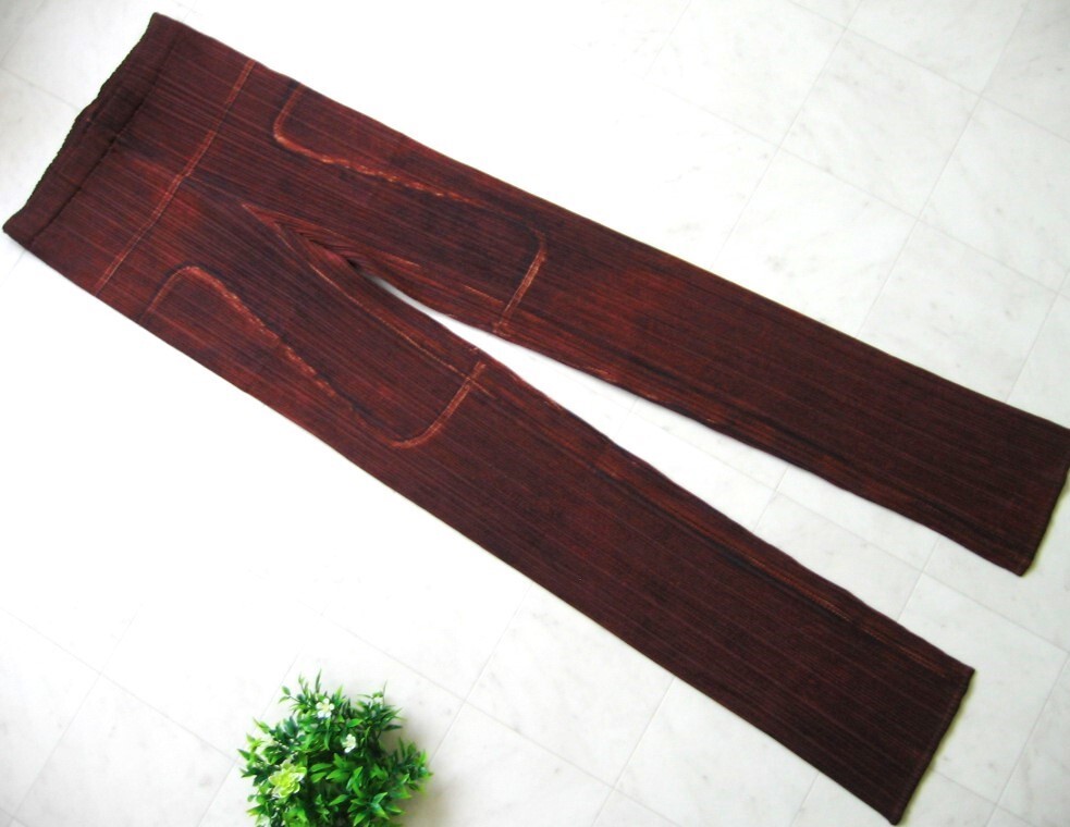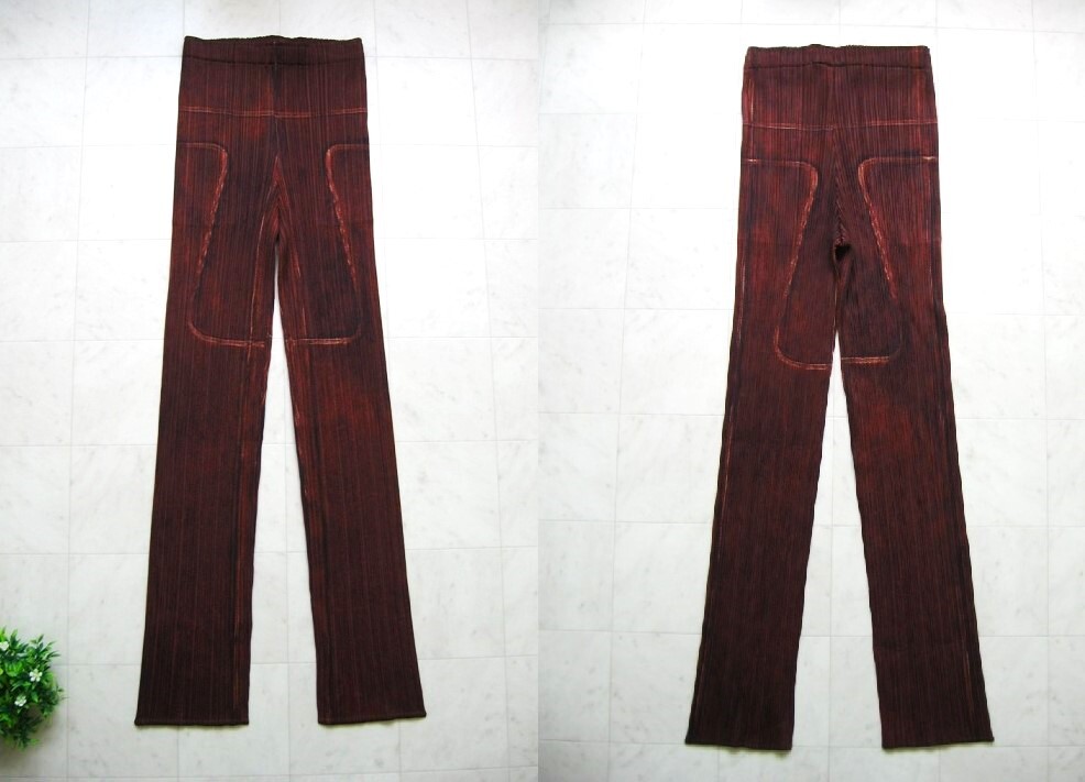 PLEATS PLEASE プリーツプリーズ イッセイミヤケ 日本製 ★ デニム転写♪ プリーツパンツ 3 ブラウン系