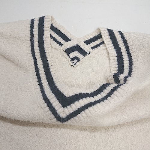◇ one after another NICE CLAUP ボーダー柄 - ニットベスト サイズF アイボリー レディース E
