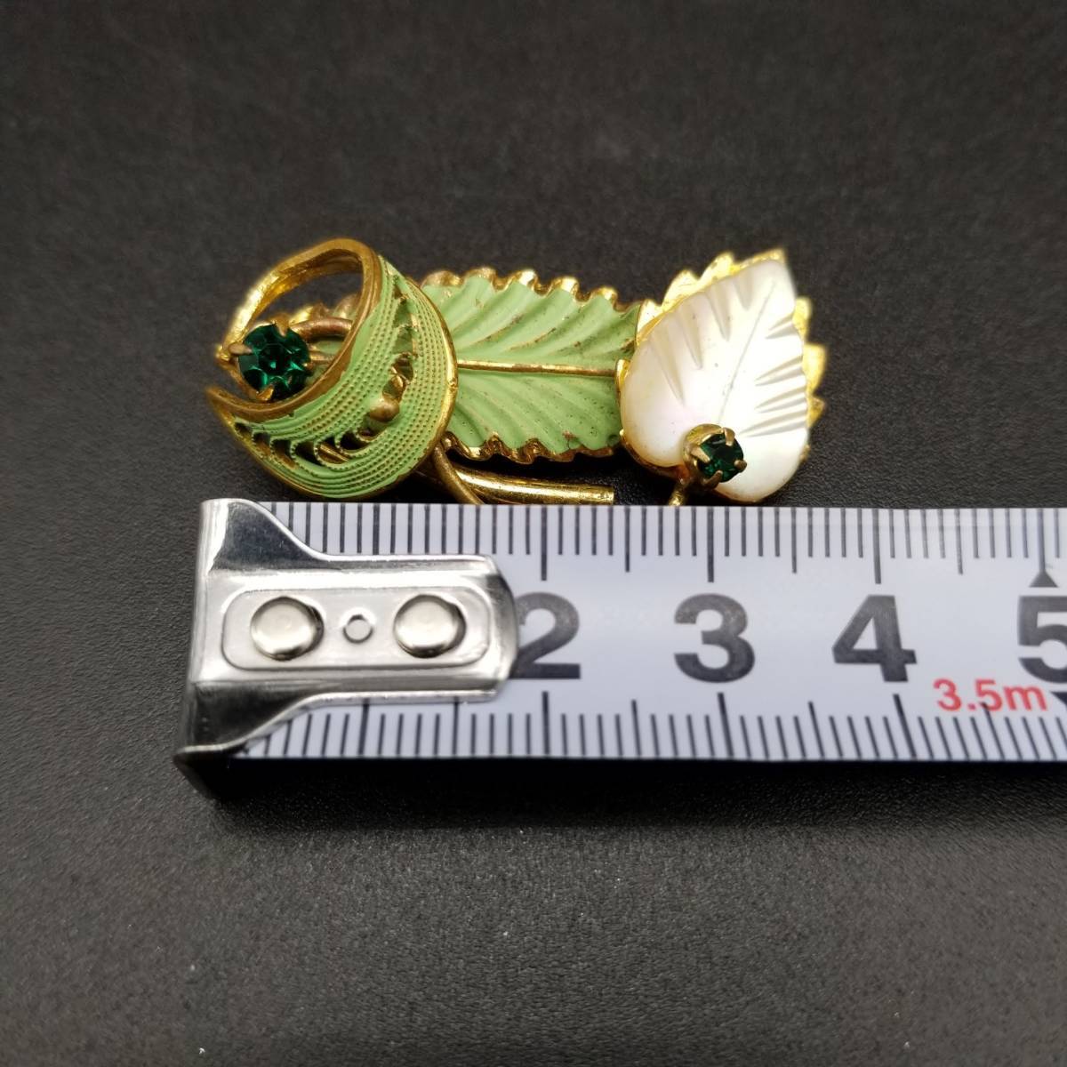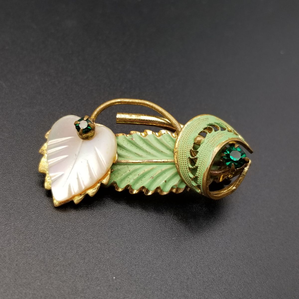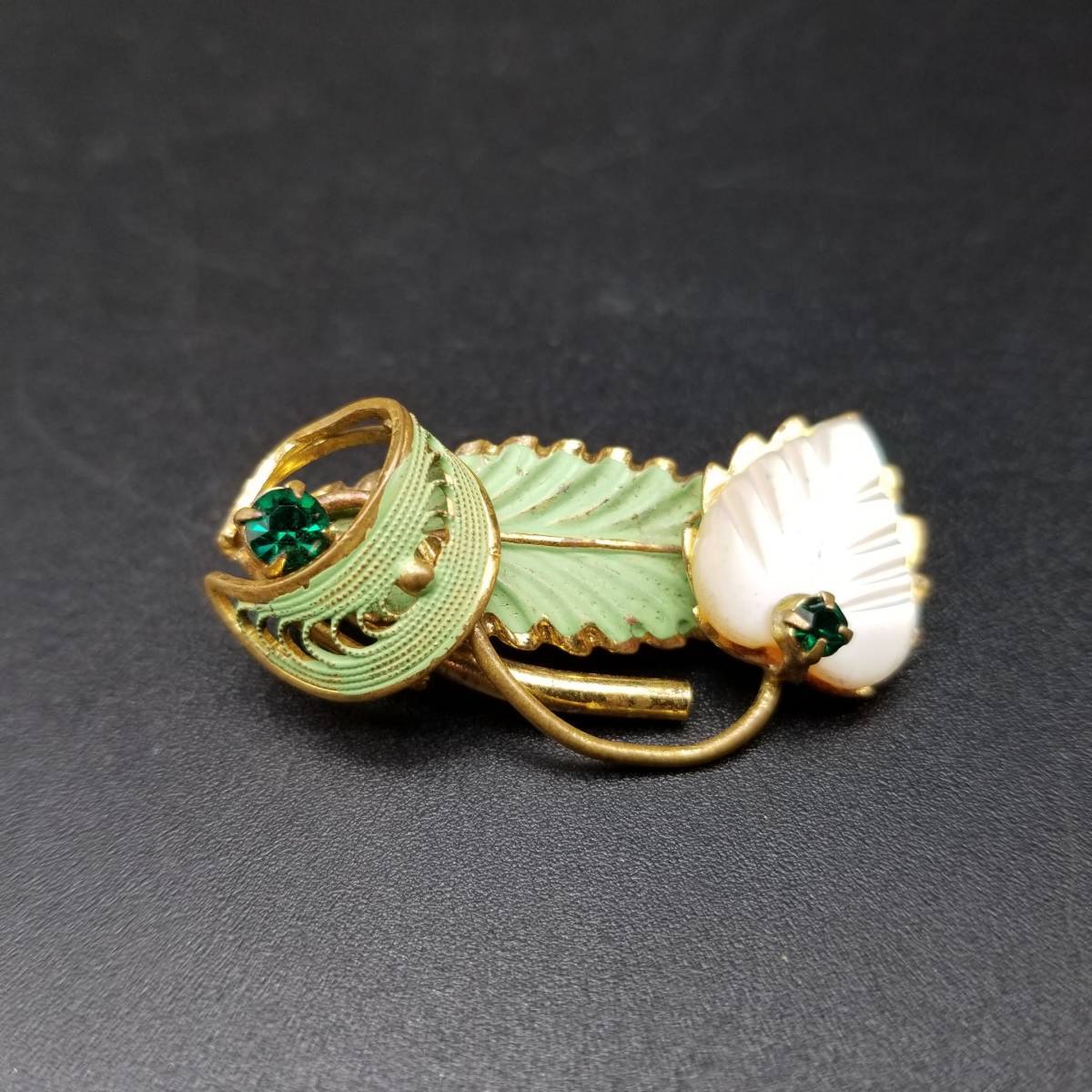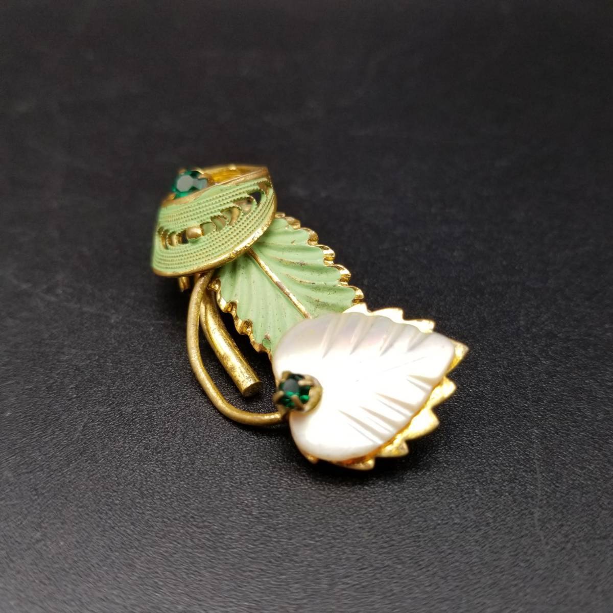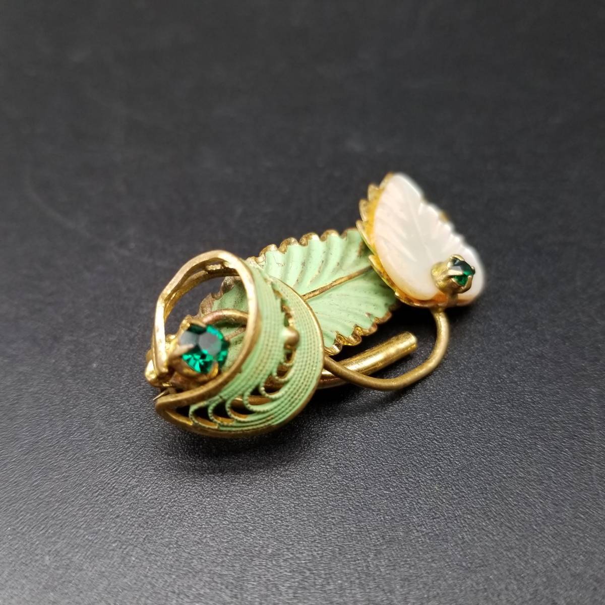 30's ヨーロッパ ヴィンテージ フローラル ブローチ 植物 葉モチーフ 淡い色合い レトロキュート 曲線美 Y16-Q