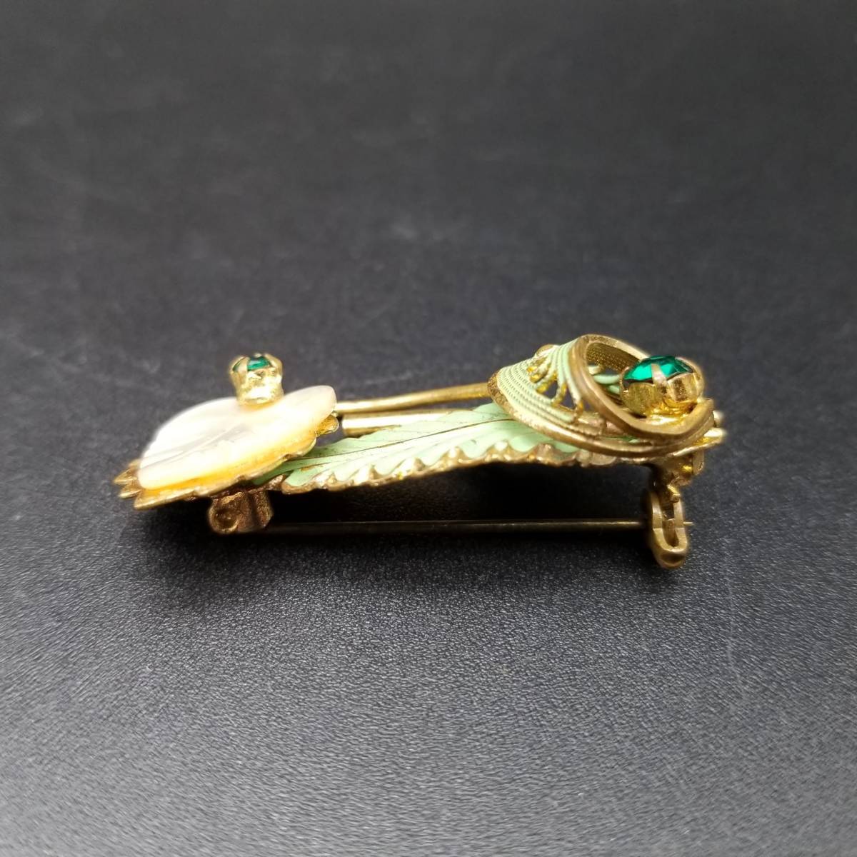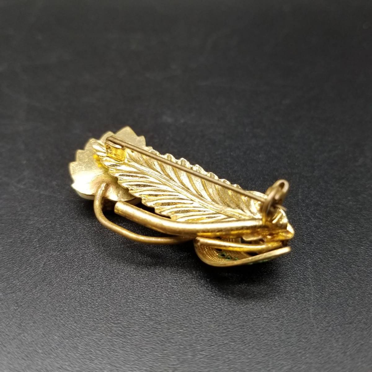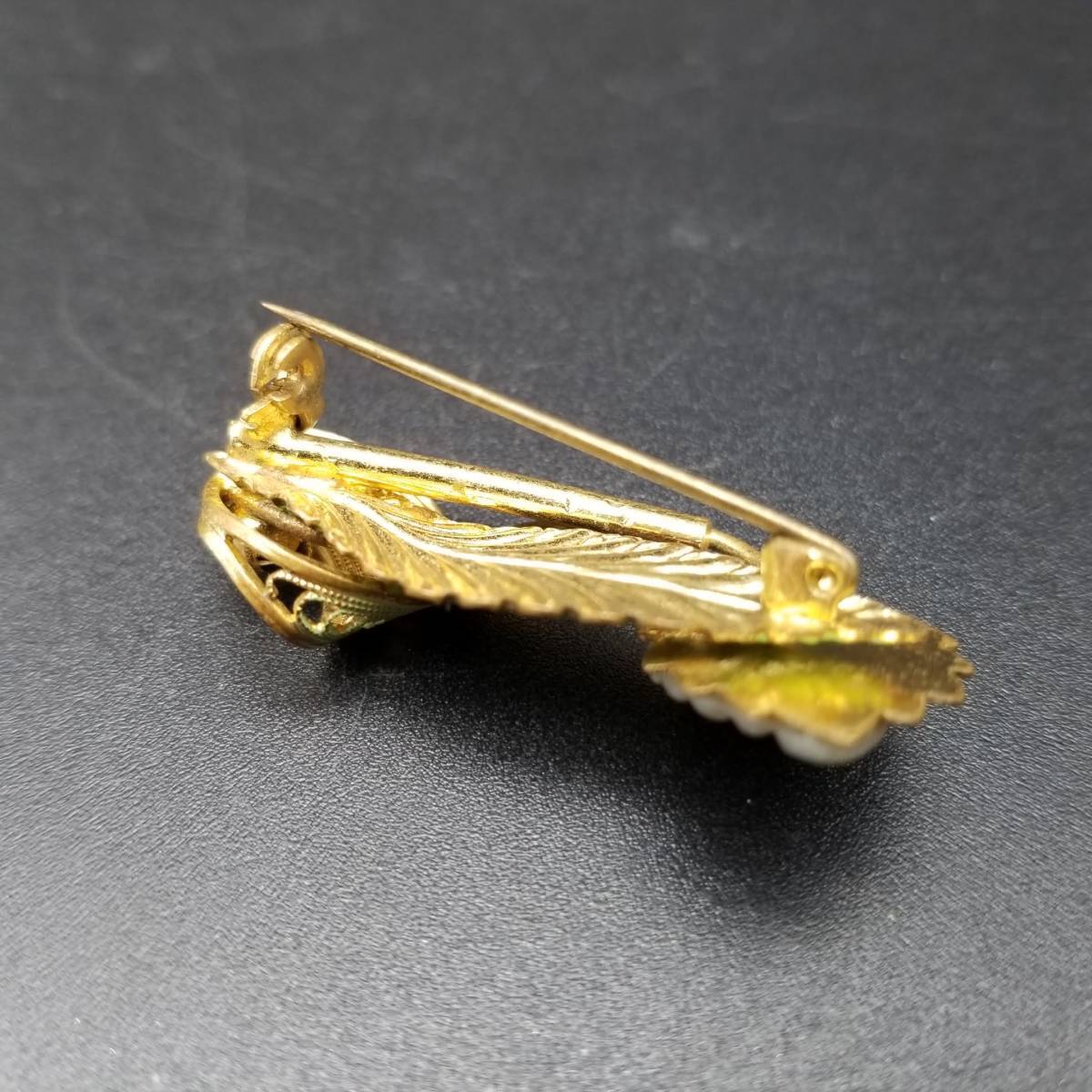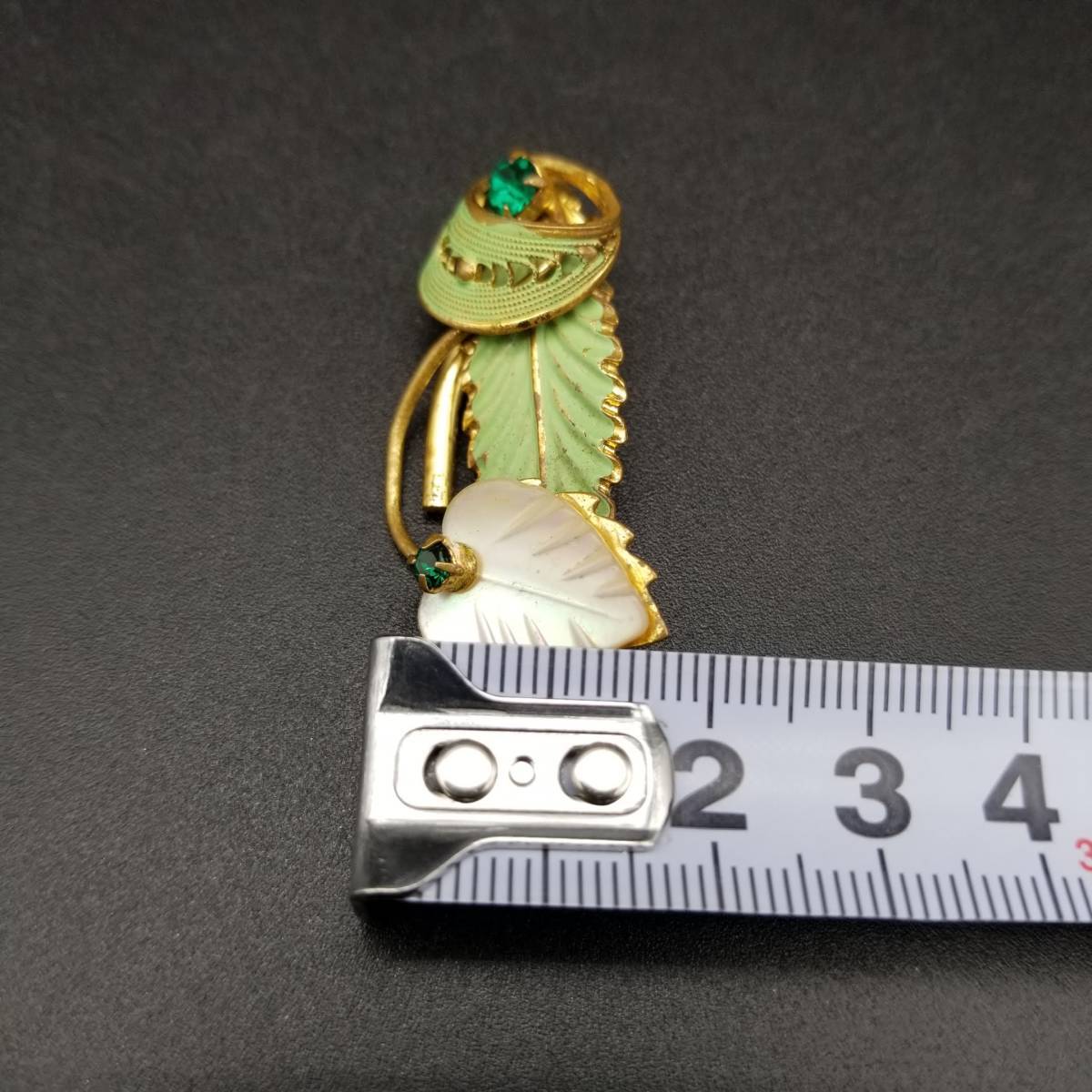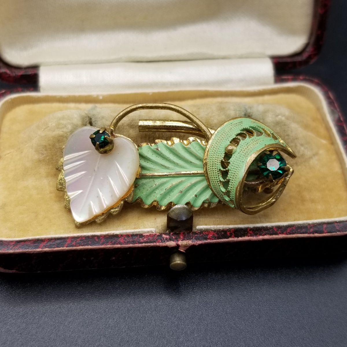 30's ヨーロッパ ヴィンテージ フローラル ブローチ 植物 葉モチーフ 淡い色合い レトロキュート 曲線美 Y16-Q