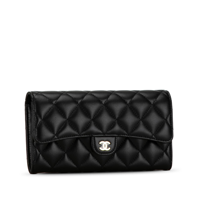 シャネル クラシック ロングフラップ 長財布 AP0241 ブラック キャビアスキン レディース CHANEL 【中古】