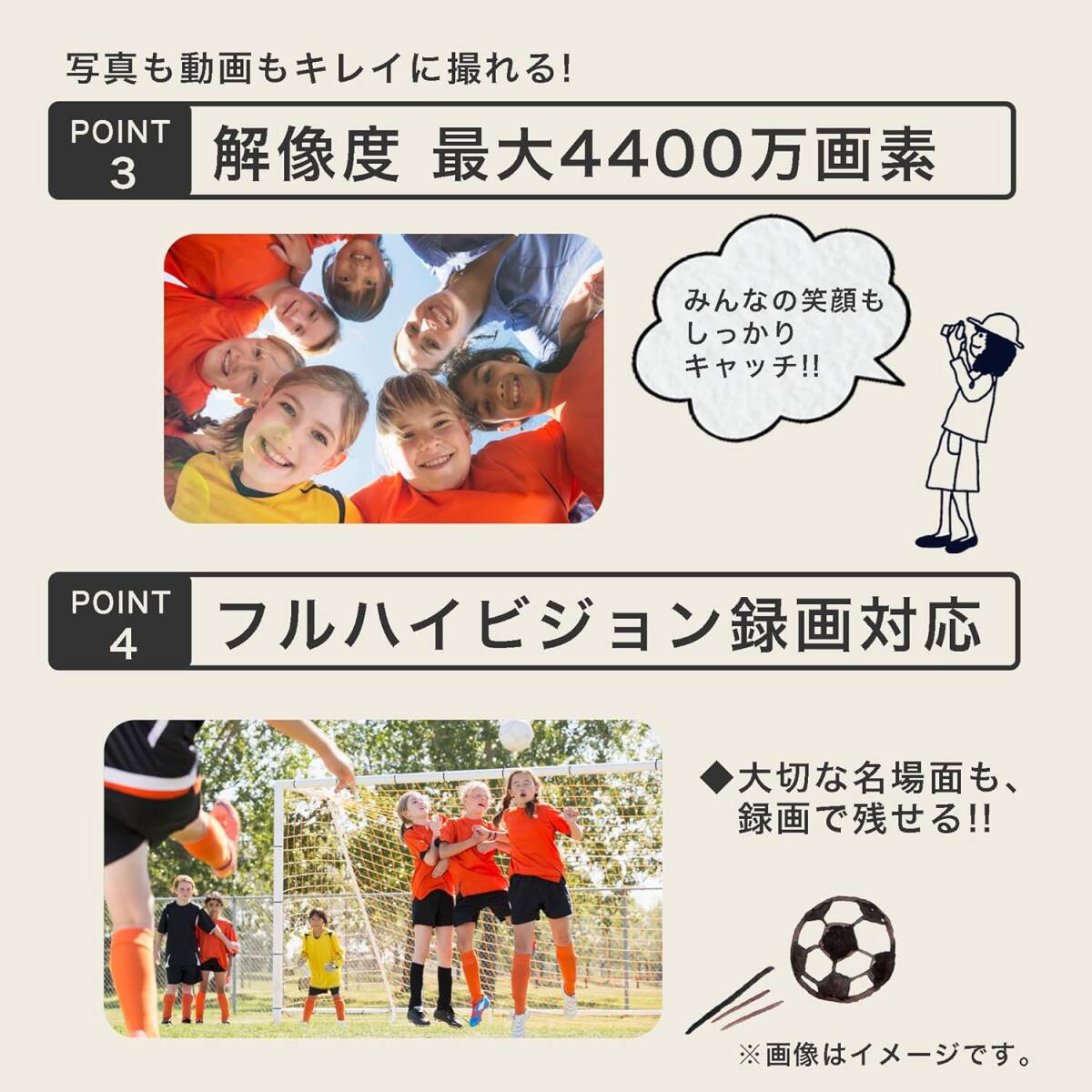 | 商品説明 | 手振れ補正、顔認識機能付き ◆軽量、持ち運びも楽々 重さ約104g、横幅99mmの軽量コンパクトサイズ ポシェットに入れても邪魔にならない! 軽量だから撮影もラクラク! 小型なのに動画撮影にも対応で、いつでもどこでも気軽に動画撮影。 写真 4400万画素 軽量 104g 電子式手ぶれ補正 動画撮影 FULL HD ◆見やすいディスプレイ ディスプレイ 2.4インチ デジタルズーム 16倍 Type-C 充電式 メモリーカード (microSD別売り) 手ぶれ補正、顔認識機能付き 運動会やペットの撮影など動きのあるものでもカンタンに撮影できます。 お子様でっも思い通りの写真撮影が可能。 便利なネックストラップ付き ネックストラップ付きだから両手が使えて便利! 持ち歩きでの撮影に便利です。 ※こちらの商品は他の商品との同梱発送はできません。 |