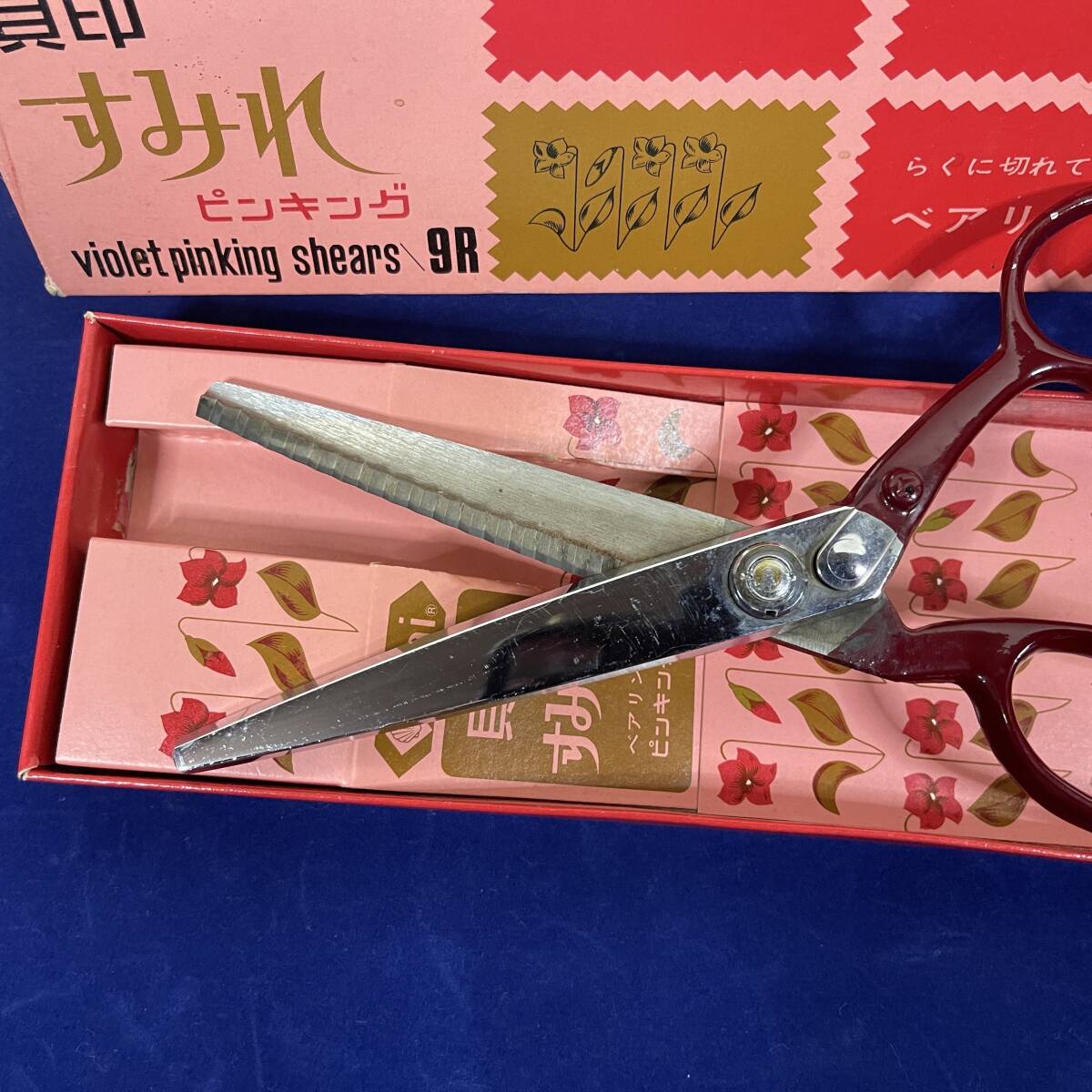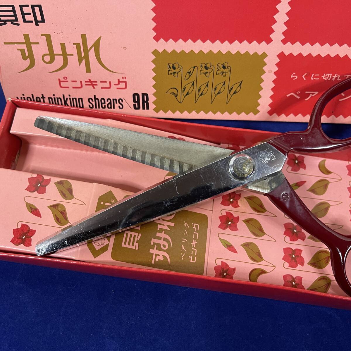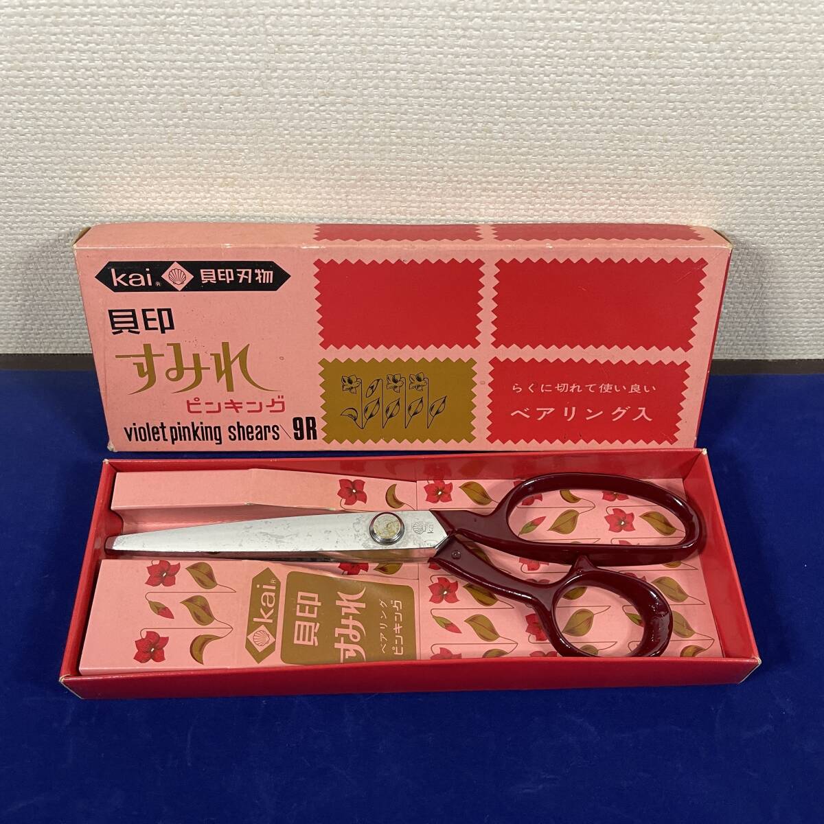 (TANE3) 箱付き!!Kai 貝印刃物 すみれ バイオレット ピンキング シザーズ 9R ベアリング入り 昭和レトロポップ ビンテージ 中古 JUNK