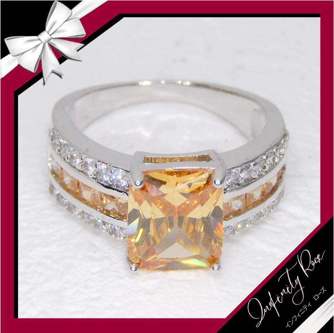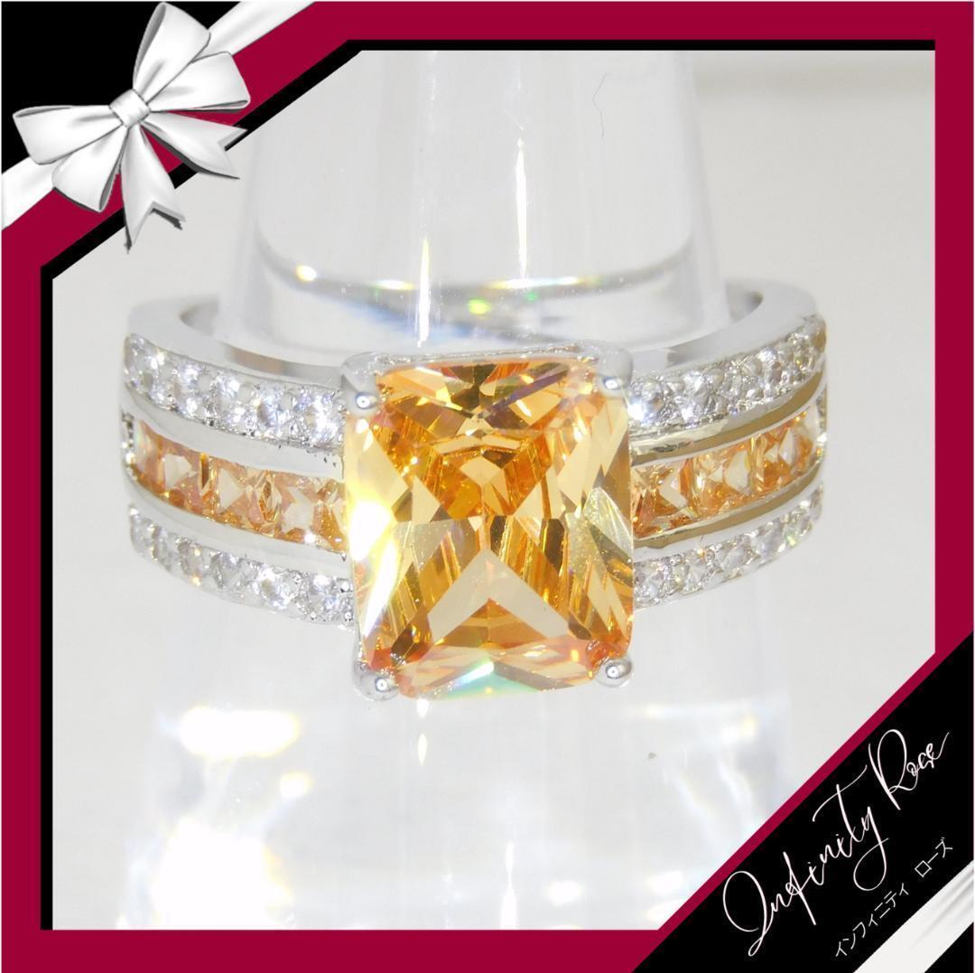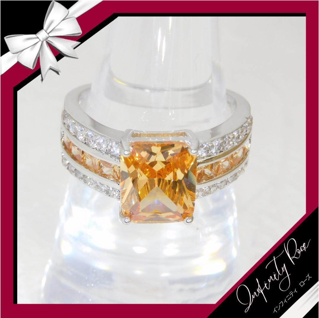 (R047SO)22号 オレンジ豪華煌めく華やかゴージャスワイドリング 指輪