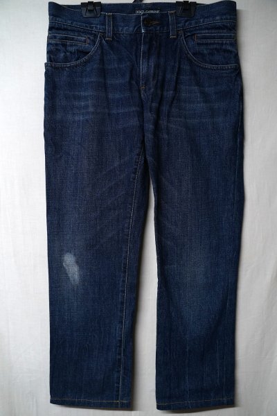 DOLCE&GABBANA メタルロゴプレート デニムパンツ
