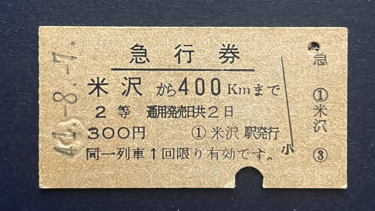 国鉄、硬券、急行券、奥羽線 米沢駅から400Km、昭和41