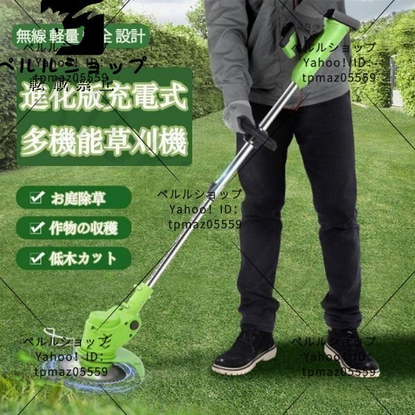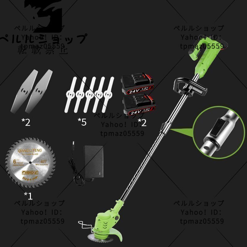 充電式多機能草刈機 コードレスバッテリー式 伸縮角度調整 替刃付き軽量 安全 無線 充電式 コードレス 充電器 バッテリー 2個付き WJGJ78