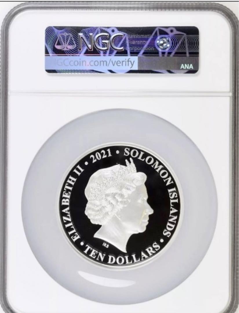 世界で1枚のみソロモン諸島2021年10ドル5オンス銀貨プルーフコイン女王エリザベス2世プラチナ ジュビリーNGC PF68ウルトラカメオ元箱&COA