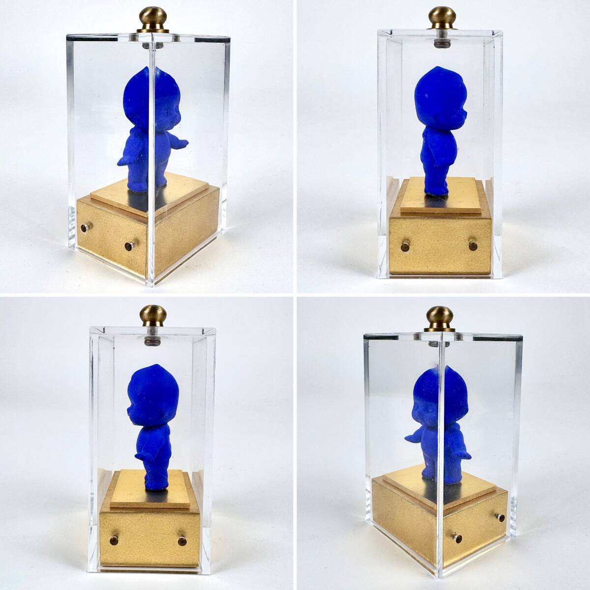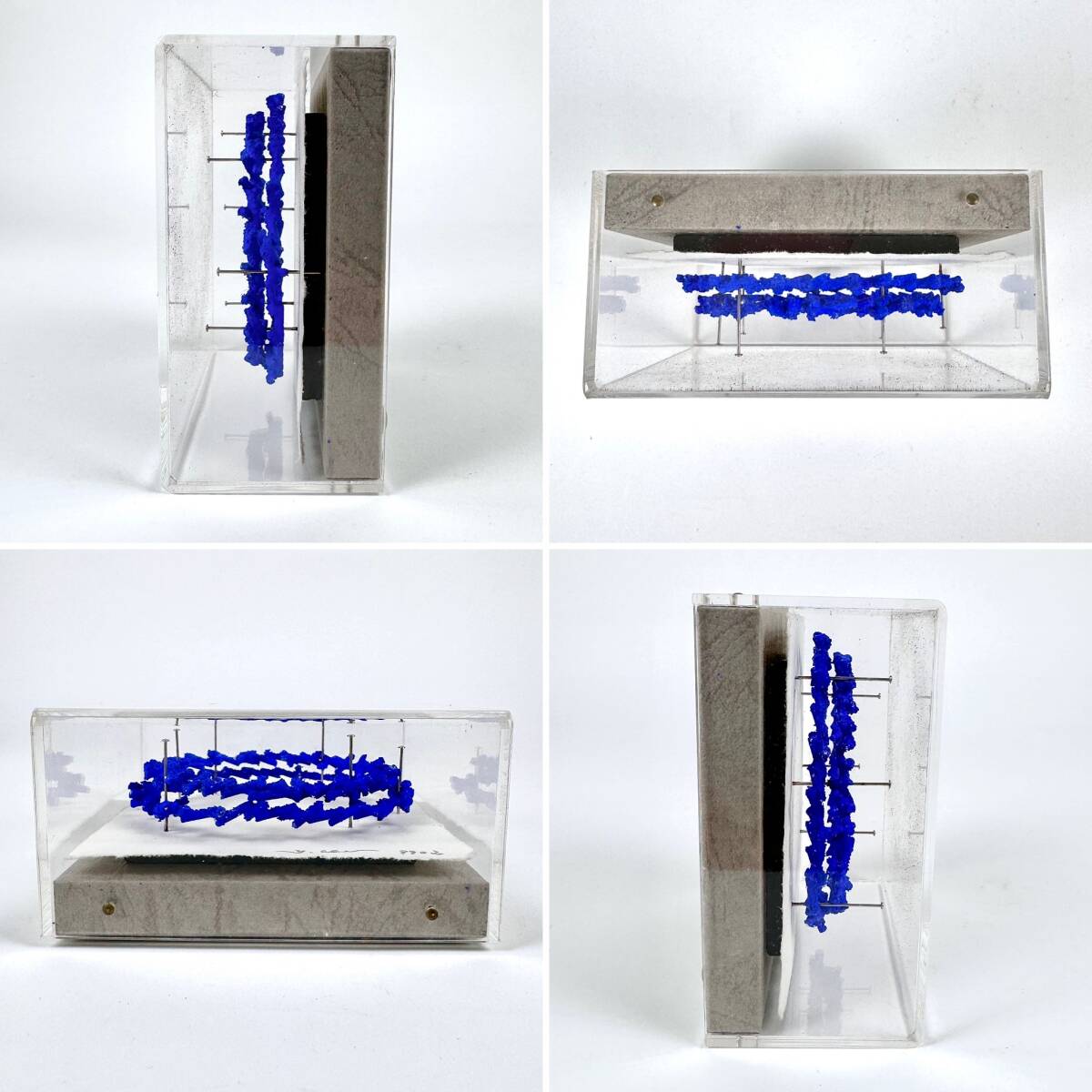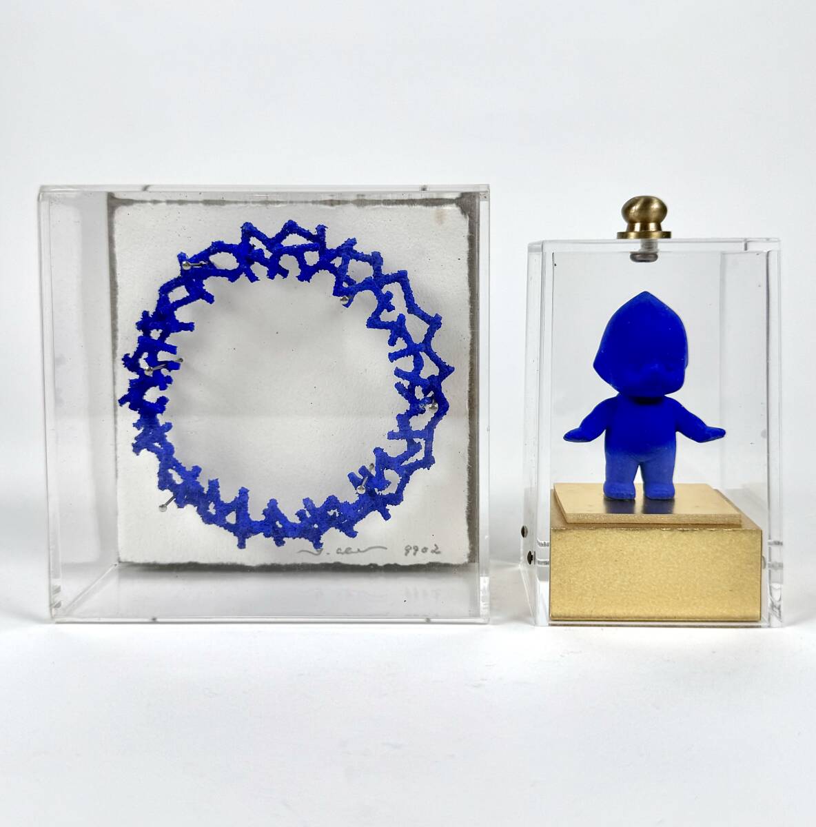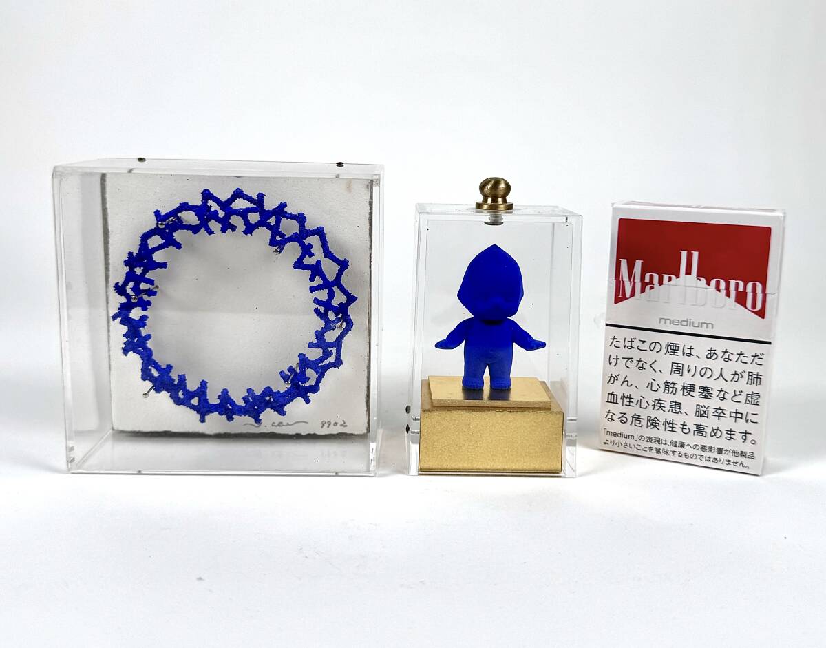 造形作家 阿部佳明★立体小作品 2点セット アクリルBOX入り 石 鉄 アクリル絵具 9902 キューピー コバルトブルー 現代美術 アート オブジェ