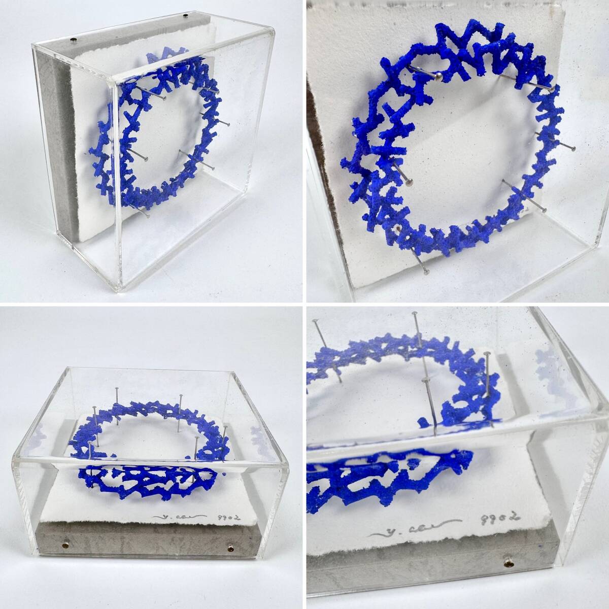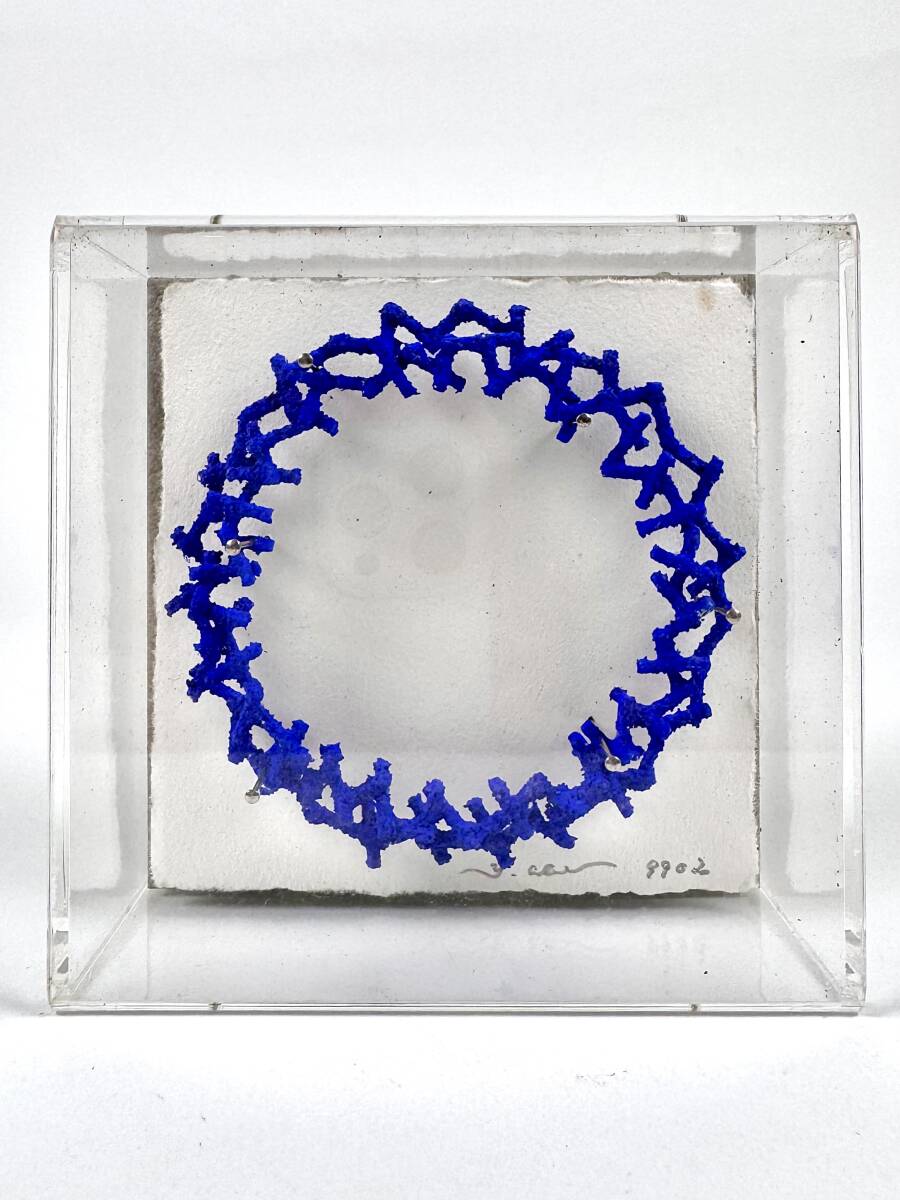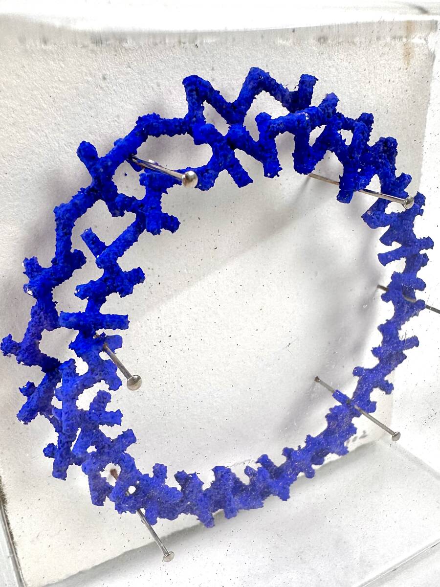 青い珊瑚が円を描いたような不思議な造形物★阿部氏の代表作である立体作品です。タイトルは「9902」。鉄や石を素材とした小さなスティック状のパーツをつなぎ合わせ、アクリル絵具で着色しています。