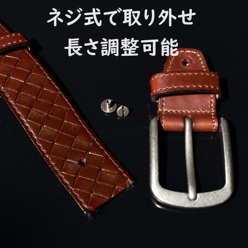 ■新品未使用品■ スーツでもカジュアルでも使えるイントレチャートベルト。 上品な印象を与え、一気に雰囲気を変えてくれます。 厚みもしっかり4mmあり、贅沢に牛革を使用しております。 長さ調整はマイナスドライバーでバックルを外す事が出来ます。 ご希望であれば当社で調整をしてお送りさせて頂きますので、その際はご連絡下さい。 【お手元にあるベルトの、バックルを含めた端から端までの長さをご連絡下さい。】 素材:牛本革 カラー:ブラック サイズ:長さ120cm・幅3.7cm・厚み4mm・重さ0.2kg ※平置き寸法となりますので、多少の誤差はご了承下さいませ※ |