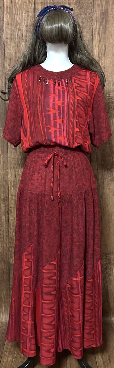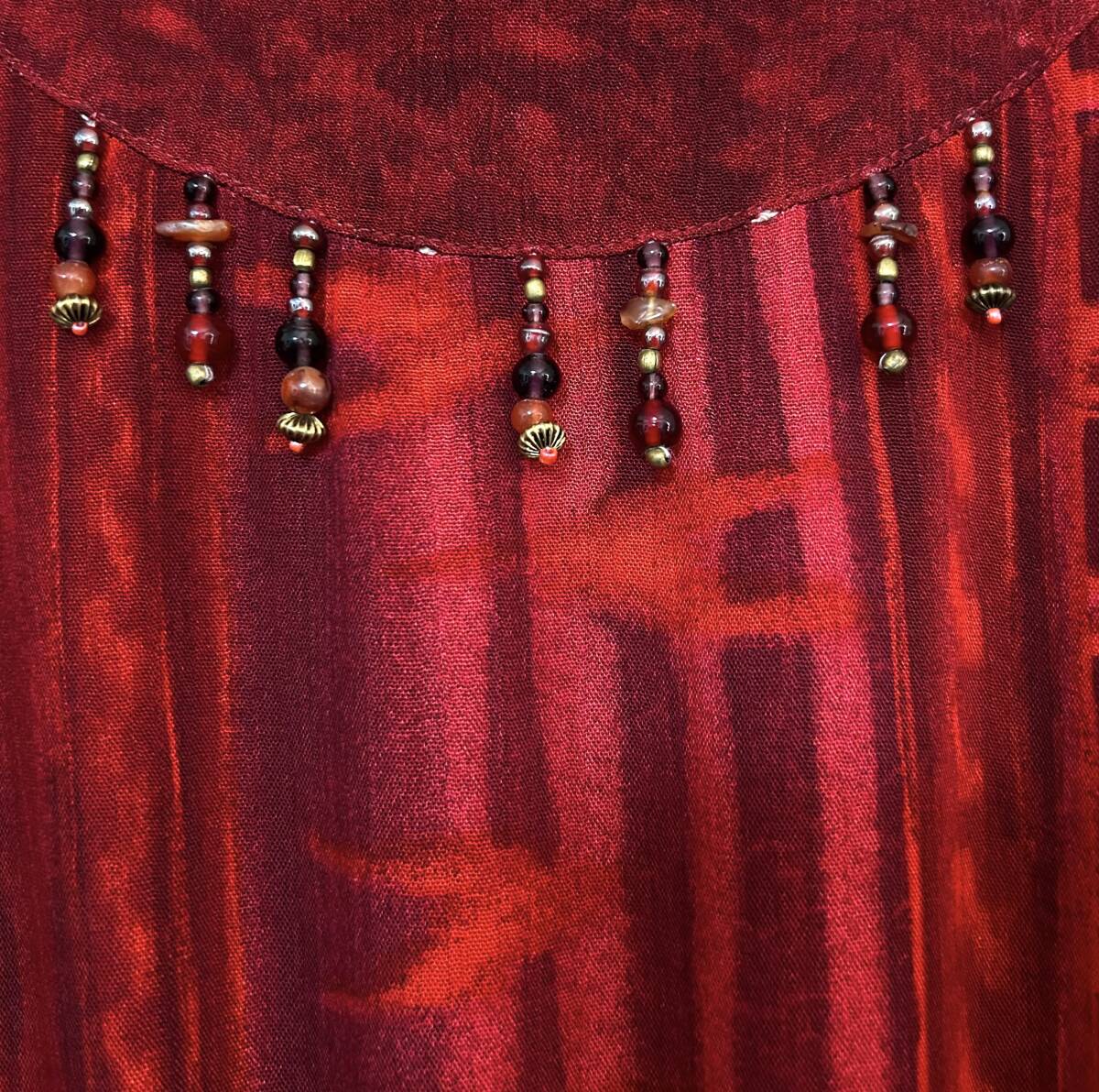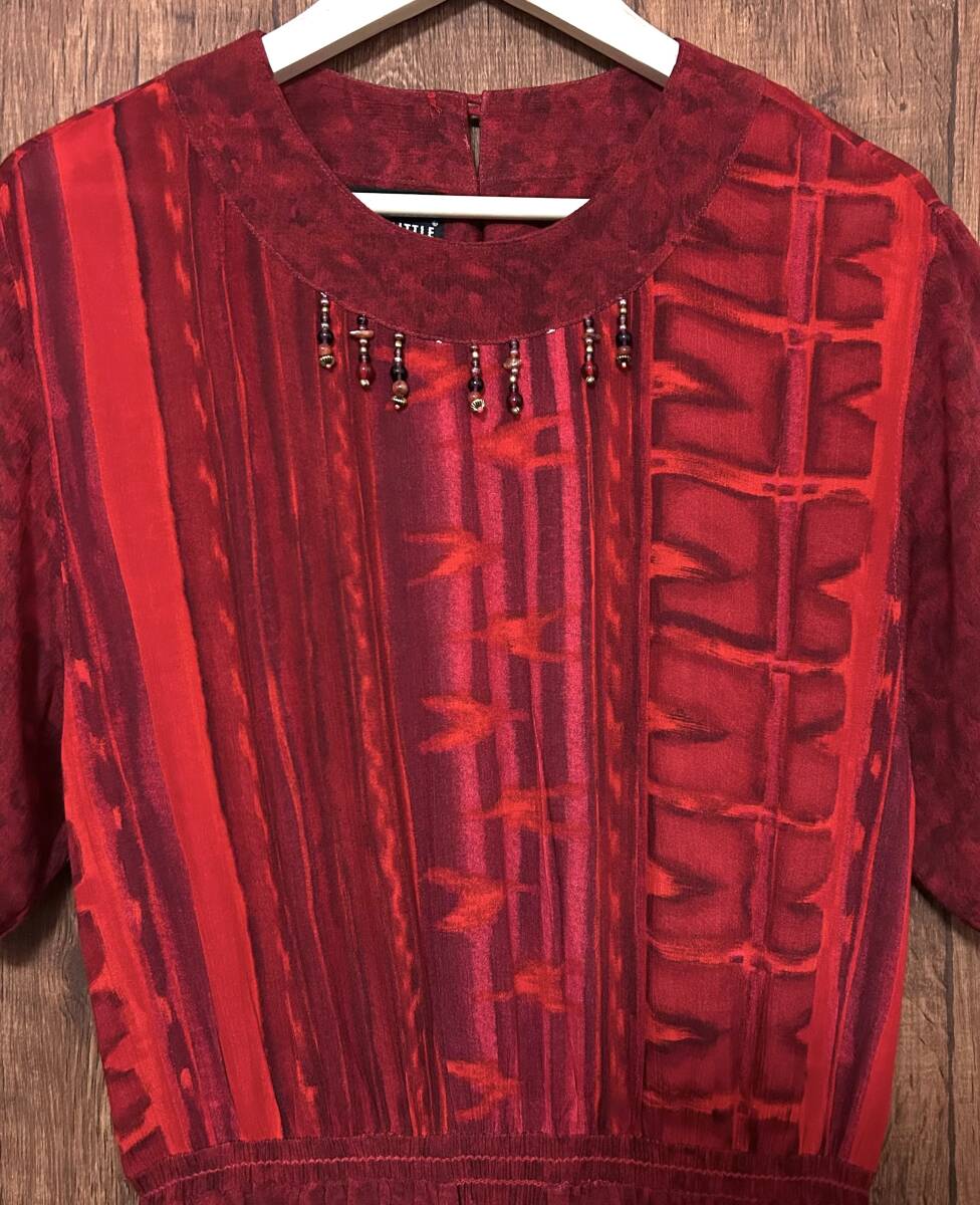 長めの着丈、首元の装飾品もおしゃれなポイントです♪