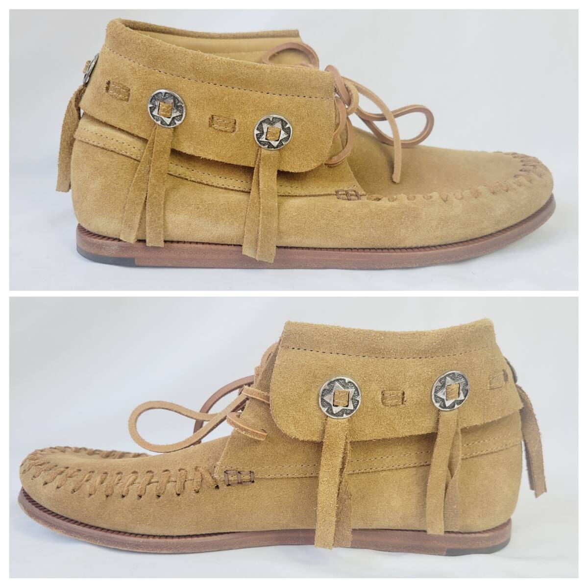 サンローラン スエード モカシンブーツ 37.5 フリンジ スウェード レザー レディース SAINT LAURENT
