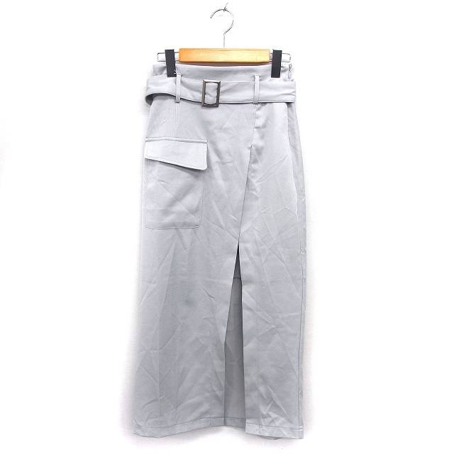 クリア clear スカート ナロー ロング マキシ丈 ベルト スリット S グレー /NT25 レディース