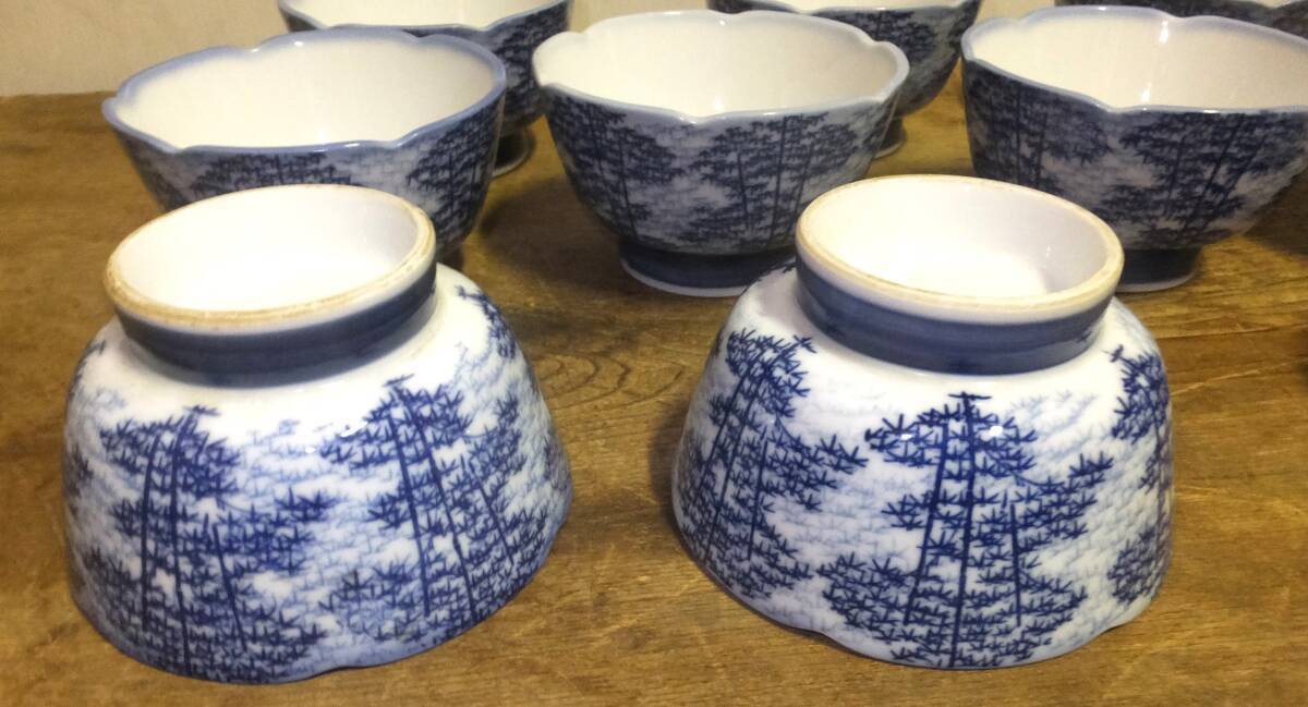 ▲て-502 ① 小鉢 10個 染付 竹柄 保管品 磁器 盛り付鉢 箱なし 単品:高さ7.5cm 幅12.5cm 重さ3.2kg