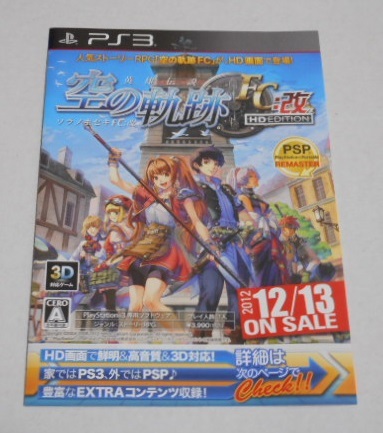 PS3  [英雄伝説 空の軌跡 FC:改] 2012 見開きチラシ、新品です。
