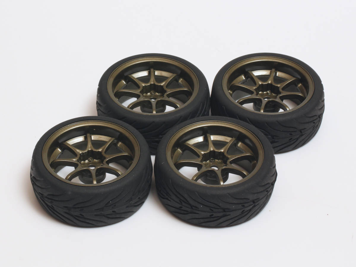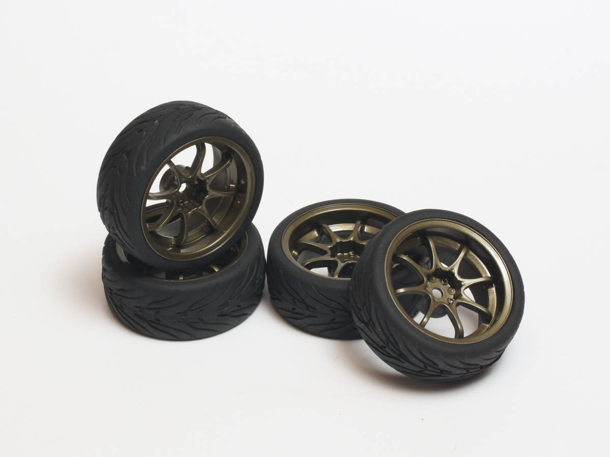 1/10ツーリングカー用 タイヤ組込み済み ブロンズ 8本スポークホイール4本 セットです。