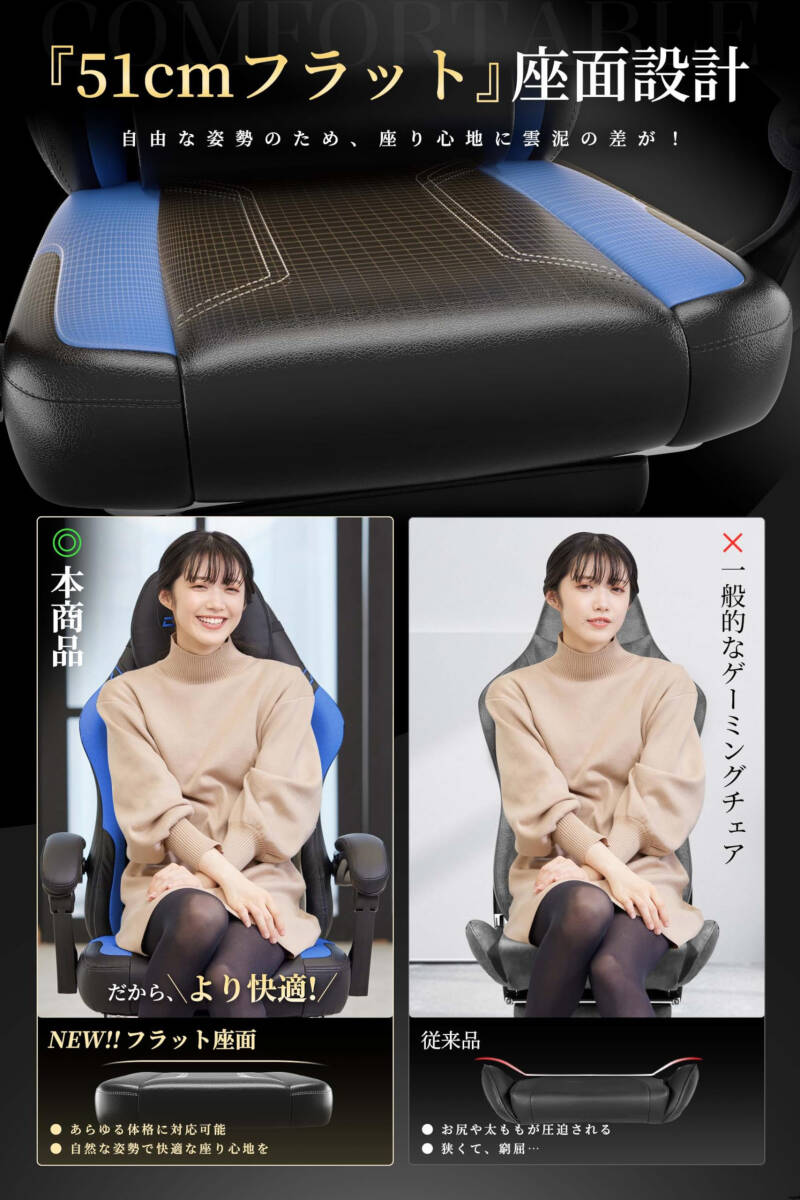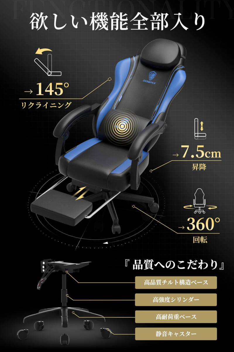 機能性と高級感を兼ね備えたこのチェアは、日々のゲームや仕事、リラックスタイムをサポートするために