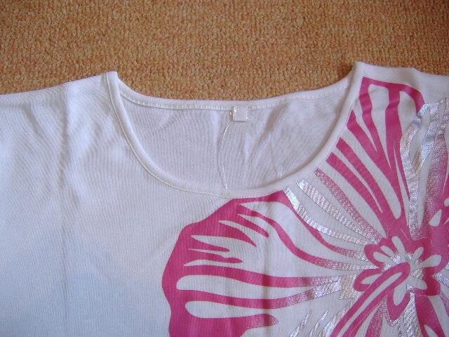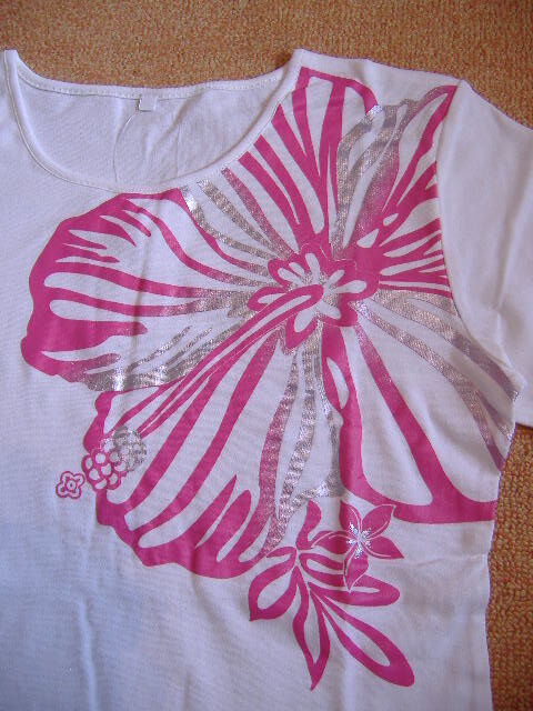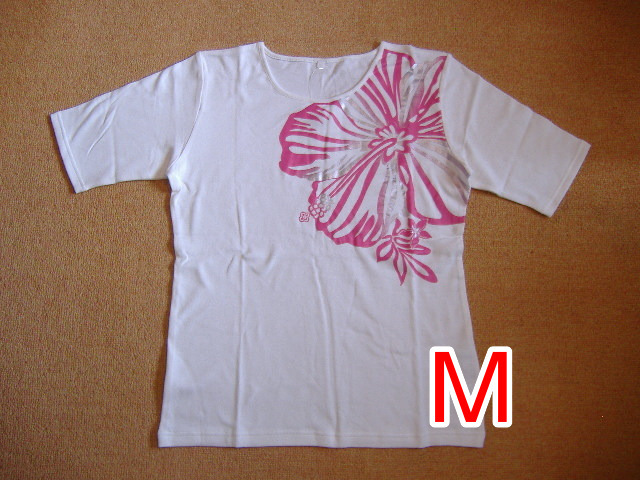 《ブラックフライデー!》5分袖Tシャツ★ビッグハイビスカス★白★Mサイズ