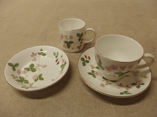 ウェッジウッド ワイルドストロベリーのカップなどをまとめての出品です。中古品。サイズ:カップ 口径φ8.5×H7cm程 口径φ6.6×H6.7cm程ソーサー φ14.7×フチH2.7cm程度小皿 φ13×フチH2.6cm程度※金彩の剥がれが目立ちます。汚れやスレ、傷があります。※予めご了承の上ご検討ください。以上のような状態ですが、よろしければどうぞ♪(^^)☆★☆---☆★☆---☆★☆---☆★☆---☆★☆---☆★☆---☆★☆---☆★☆---☆★☆---☆★☆