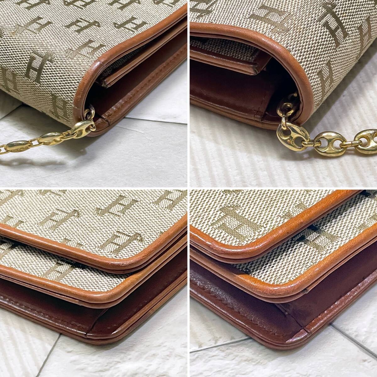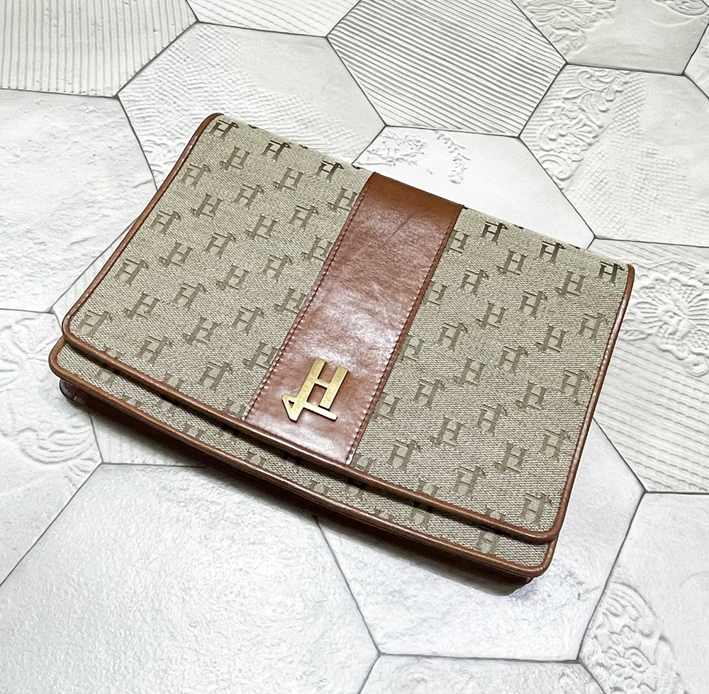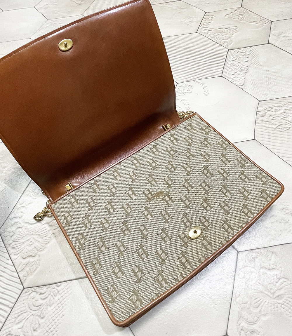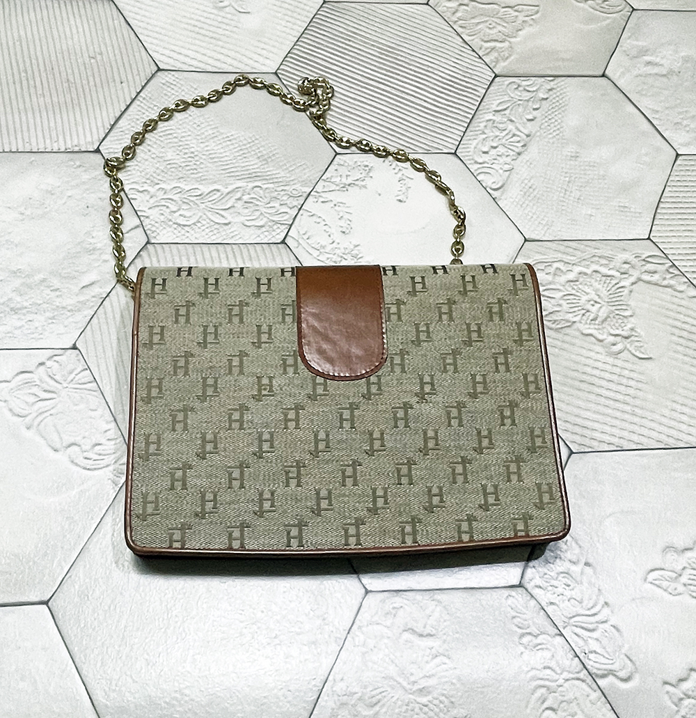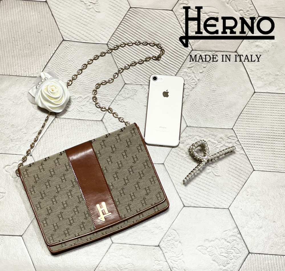 希少!イタリア製 ビンテージ ヘルノ【HERNO】牛革切替え モノグラム柄 チェーンバッグ/クラッチバッグ