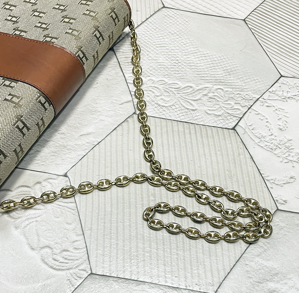 ゴールドのロゴとチェーンがアクセントとなった