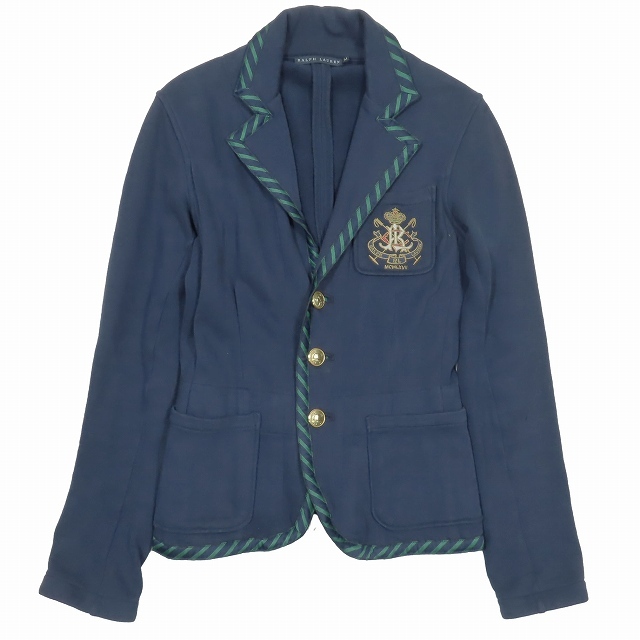 ラルフローレン RALPH LAUREN 金ボタン エンブレムロゴ刺繍 パイピングバイアス柄 テーラードジャケット アウター ネイビー