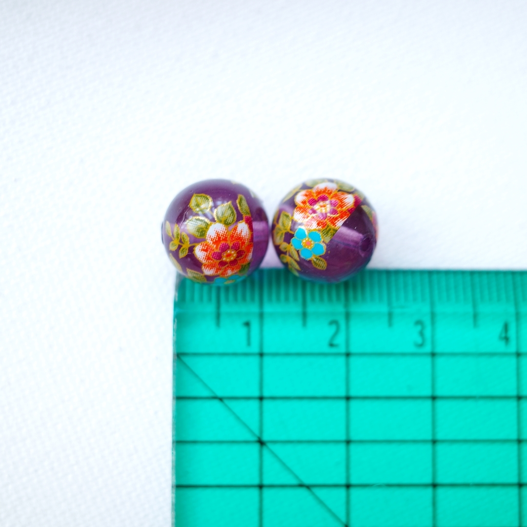 | アクリル素材のビーズにキレイな模様がプリントされたビーズです☆ かんざしの素材にしたり和服、浴衣のアクセサリーパーツに使えます とても存在感も雰囲気も素敵なパーツです。 直径1.2㎝ 2個での出品になります ※他のモノとのおまとめ発送で最高でも185円(クリックポスト)でおまとめできますのでほかのものも是非ご覧ください!  | |||
