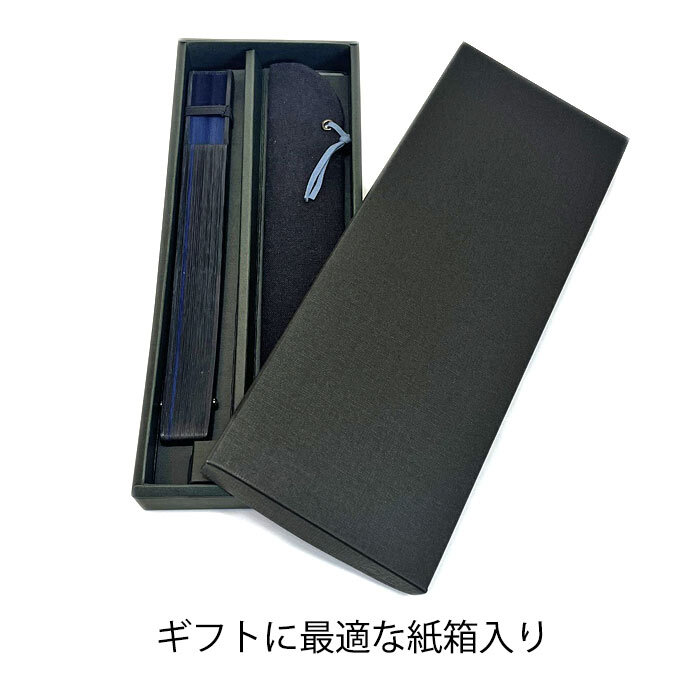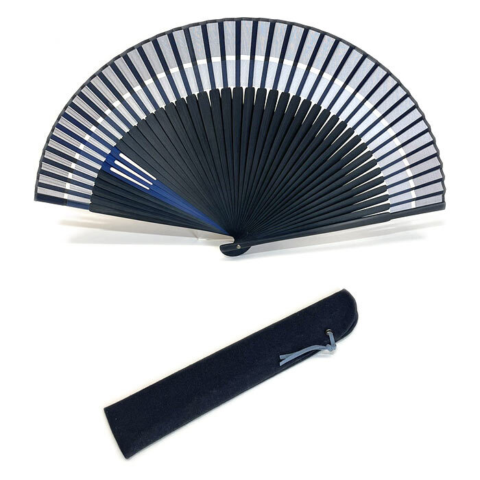 扇子セット  ダブル 紺【メール便対応可】 短地 カジュアル扇子 夏のギフト 布扇子 シルク生地 絹 贈り物 夏小物 エコ 涼感グッズ