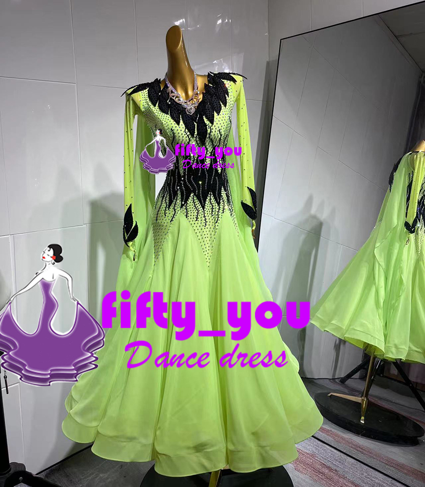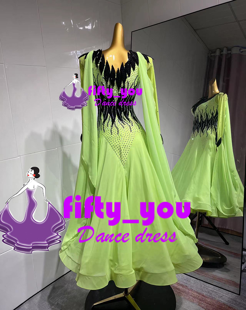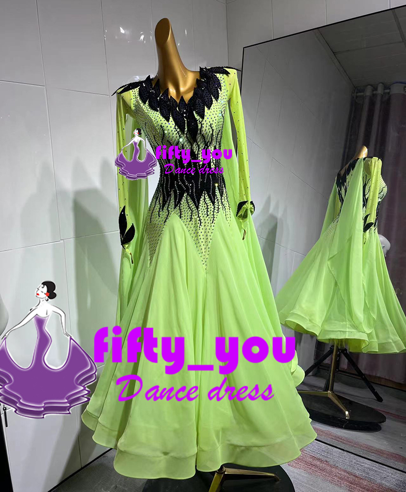 新品fifty_youオリジナル高級衣装 セミオーダードレス レディース社交ダンスドレス モダン競技ドレス ドレス+チョーカー 蛍光色